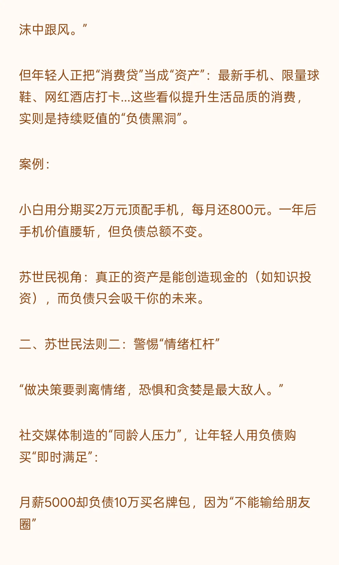 苏世民敲警钟:年轻人正在被“精致负债”榨
