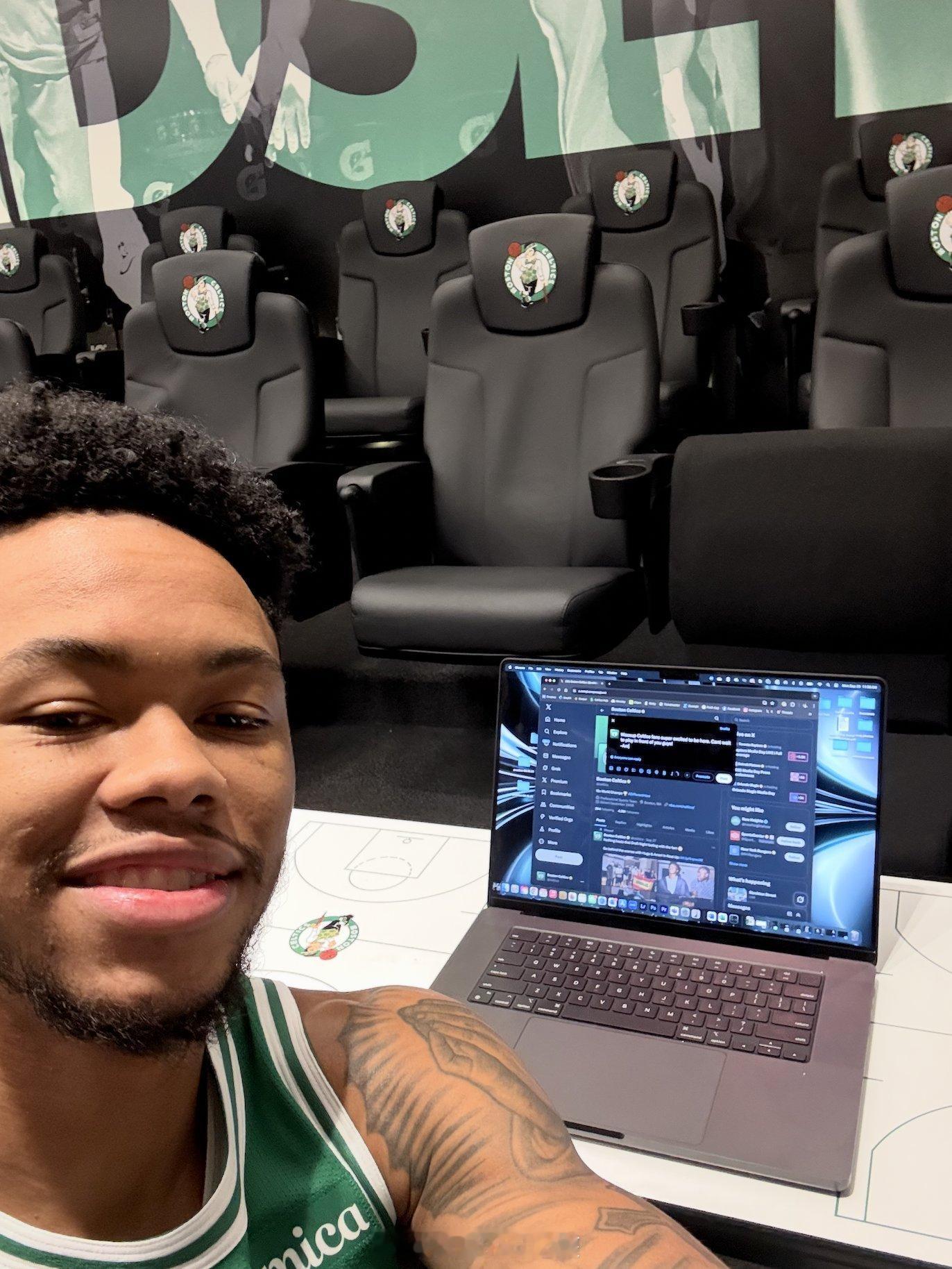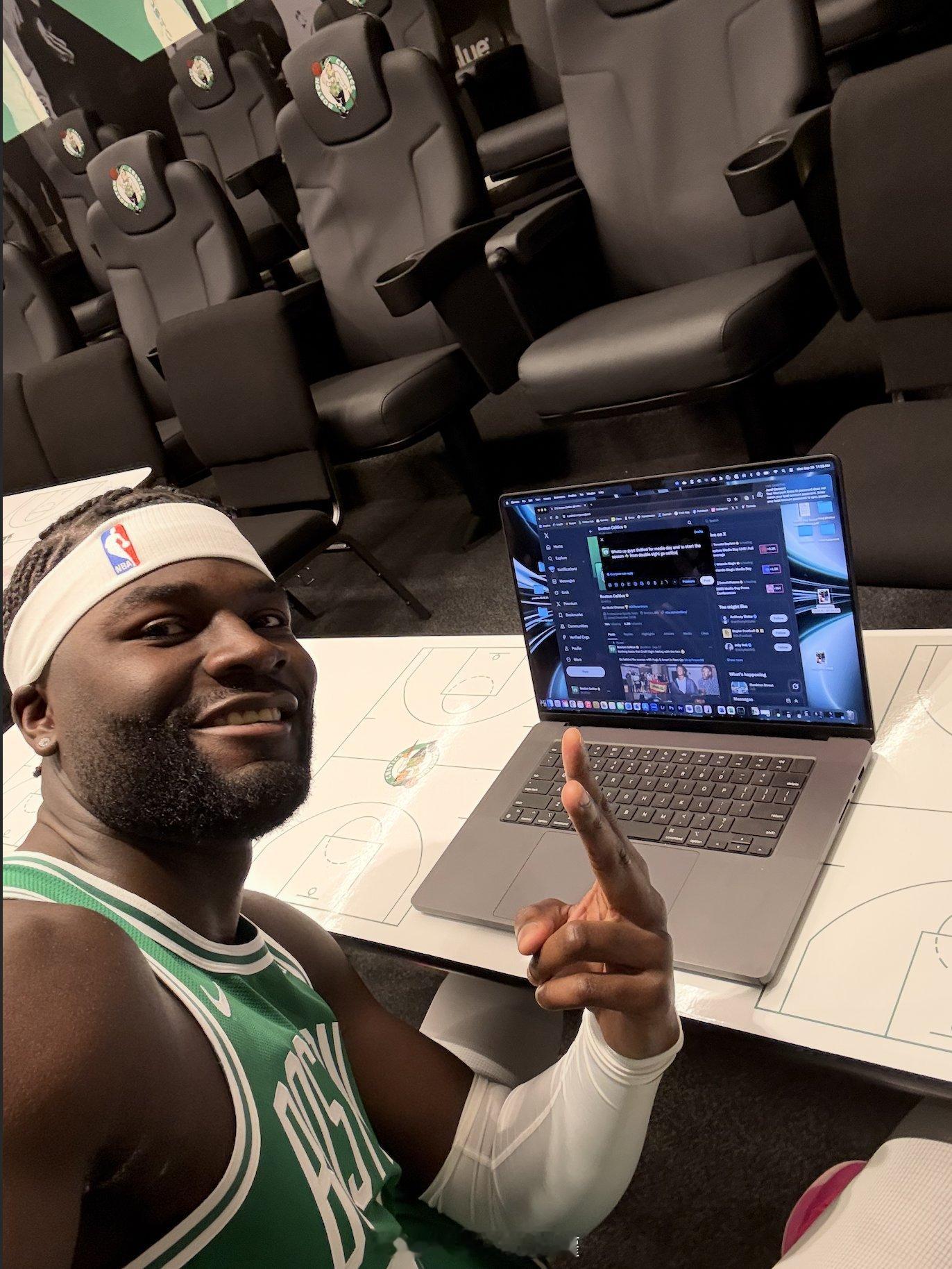 我在凯尔特人的新赛季媒体日很想你[手指比心]