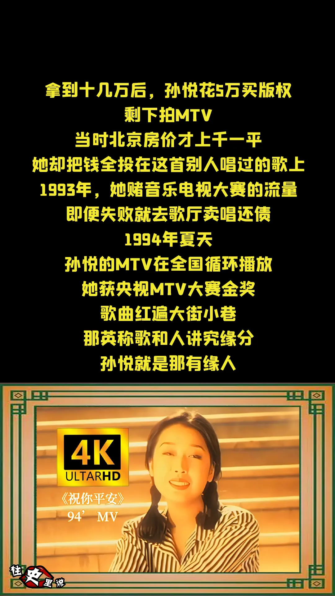 1994年,孙悦为了买下《祝你平安》这首歌,硬着头皮找人借钱:“哥,你...