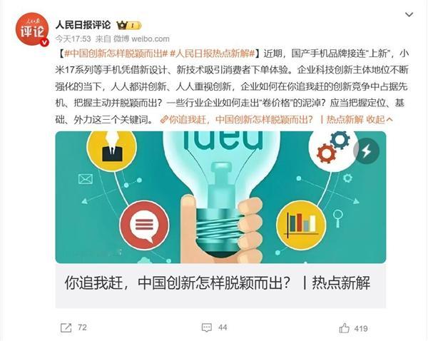 《人民日报》发文点赞小米17系列,称其 “妙享背屏” 设计与全新屏幕发光技术等创新吸引消费者尝鲜,彰显创新的消费潜能与发展动能。