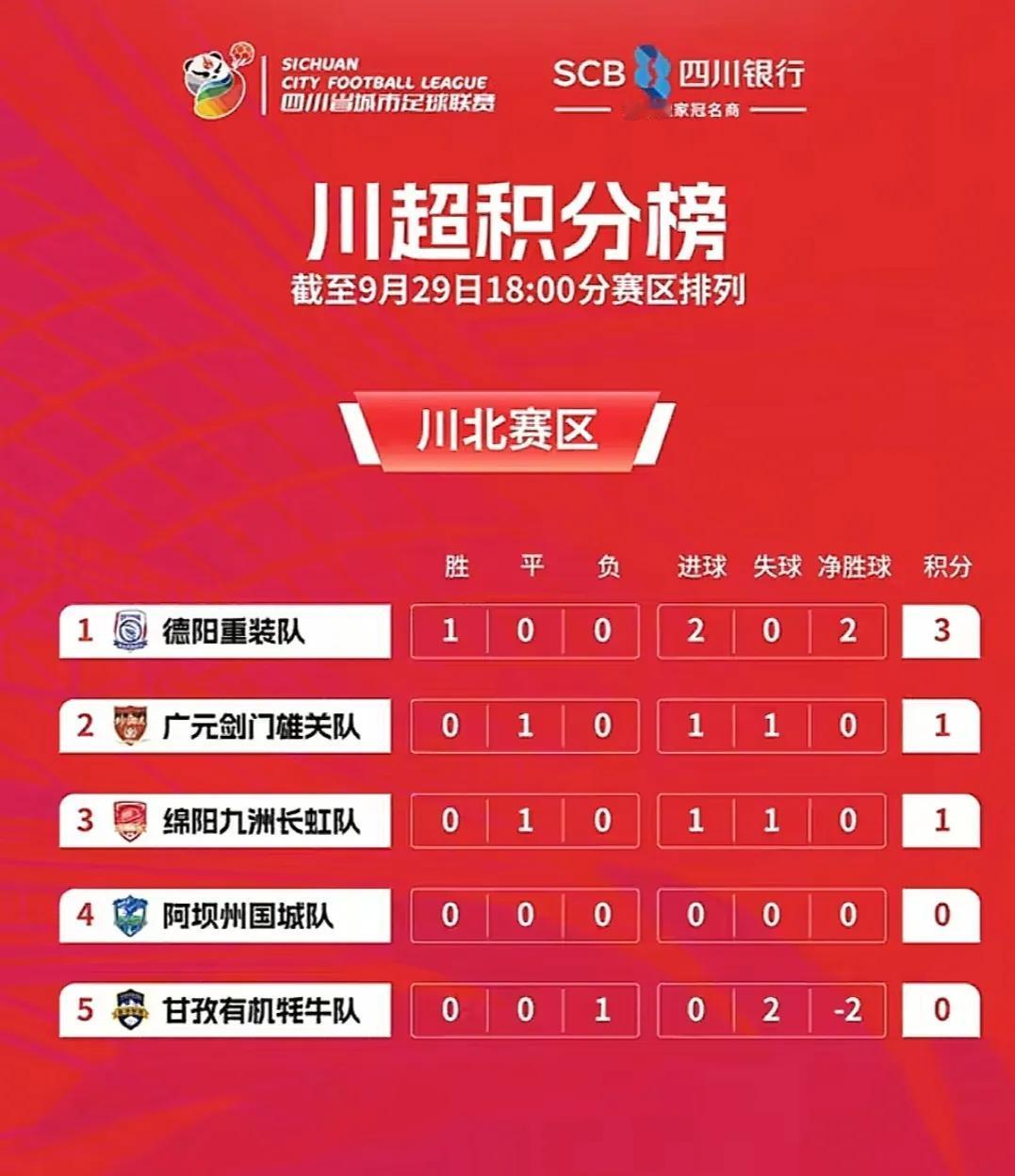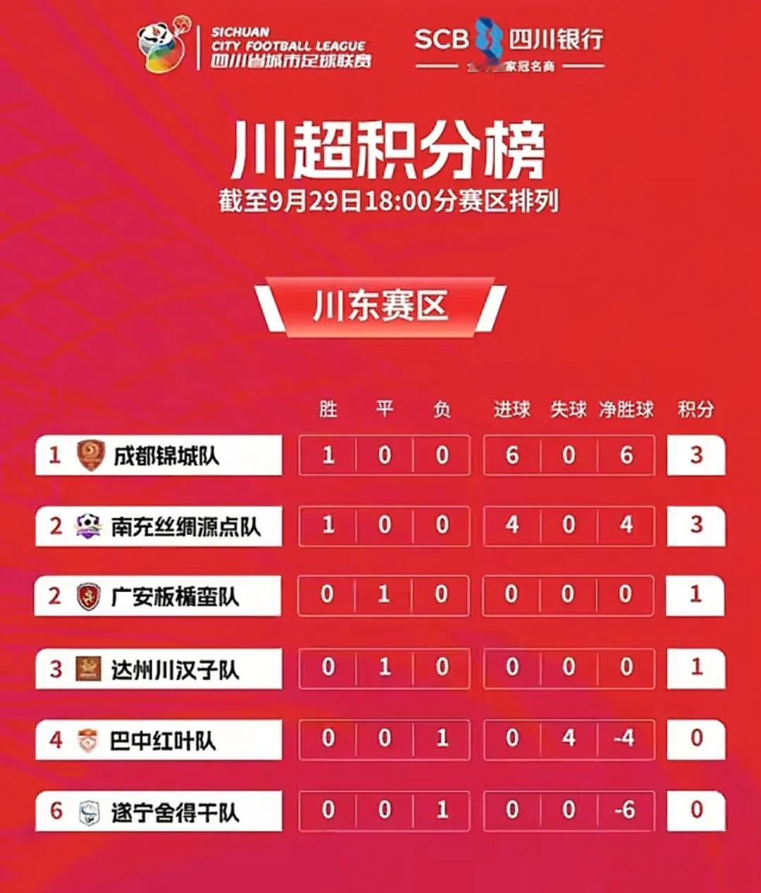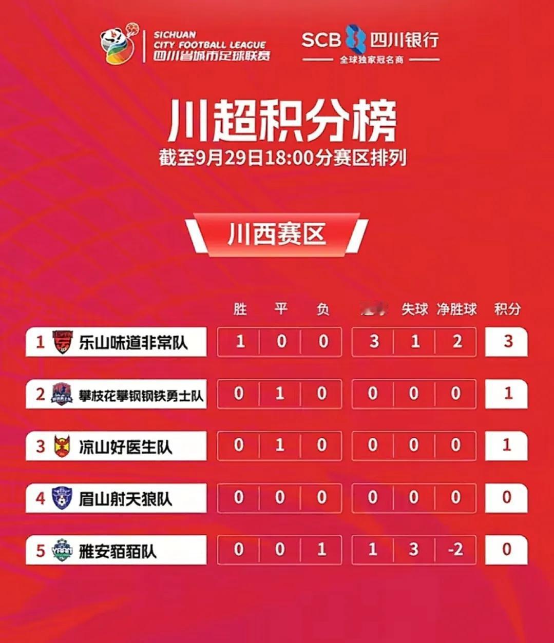 川超各队积分榜出炉,快看看你的家乡球队排第几! 川超第一轮比赛已经结束,除了眉山