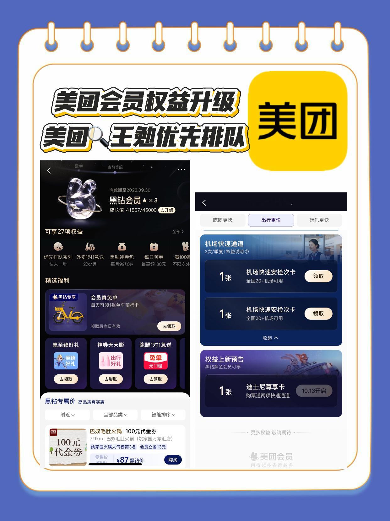 美团会员免了免了 美团会员吃了多少梗想到把王勉请来当免王啊,原来王勉的勉是免等待的免!外卖1对1急送,机场快速通道,美团叫车优先派,省去过多等待!还有即将上线的上海迪士尼两大热门项目尊享卡、美团闪购退货免运费、外卖准时宝和专属客服。💥脱口秀人营业模板+1,这种广告可看性超高![期待]美团 美团会员 美团黑钻会员