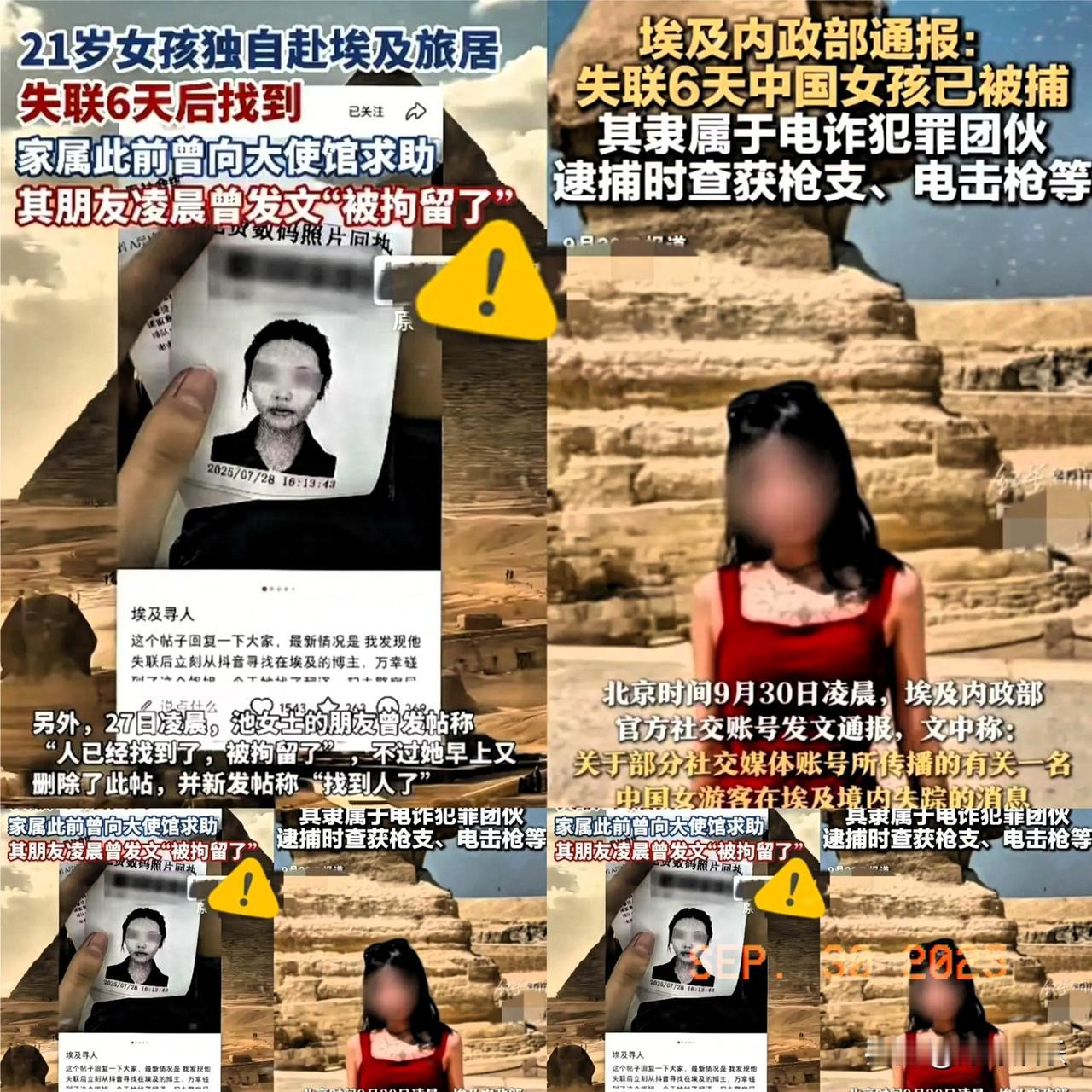 这回真是她妈尴尬了! 前阵子全网都在帮一位妈妈找在埃及失踪的女儿,大家揪着心担心姑娘出事,结果埃及内政部一通报,直接让人傻了眼——失踪女孩不仅没事,还是个绑架团伙的成员! 这群人一共8个,专挑中国人下手,用电商工作当幌子骗同胞入境,然后拿着刀枪绑架要赎金,比电诈狠多了。更吓人的是,女孩的好闺蜜差点也被骗过去,现在想想都后怕。之前妈妈全网求助多让人同情,现在真相一出来,估计她悔得都想找地缝钻,闺蜜也得庆幸自己没踩坑。 这哪是“防闺蜜”,是得防着那些披着熟人外衣的坏人!大家平时找工作、去陌生地方,真得多留个心眼。你们身边有没有遇到过类似让人后背一凉的事?评论区说说呗!