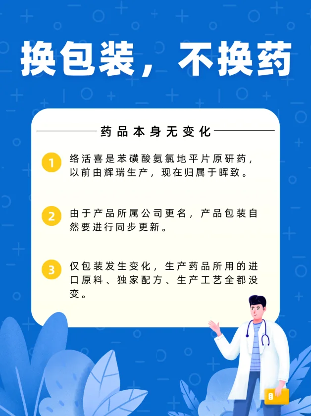 络活喜苯磺酸氨氯地平片换包装?药效不变!