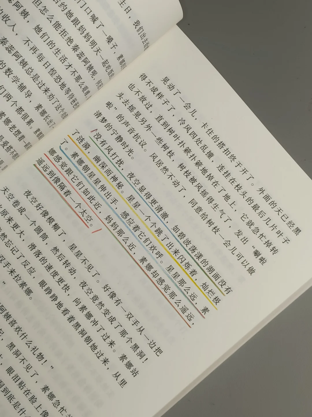 明明近在咫尺,心却隔着光年,就像书中写的:“星星那么远,素娜感觉跟它们如此近,妈妈那么近,素娜却感觉那么遥远,遥远到像隔着一个太空。”字字锥心。