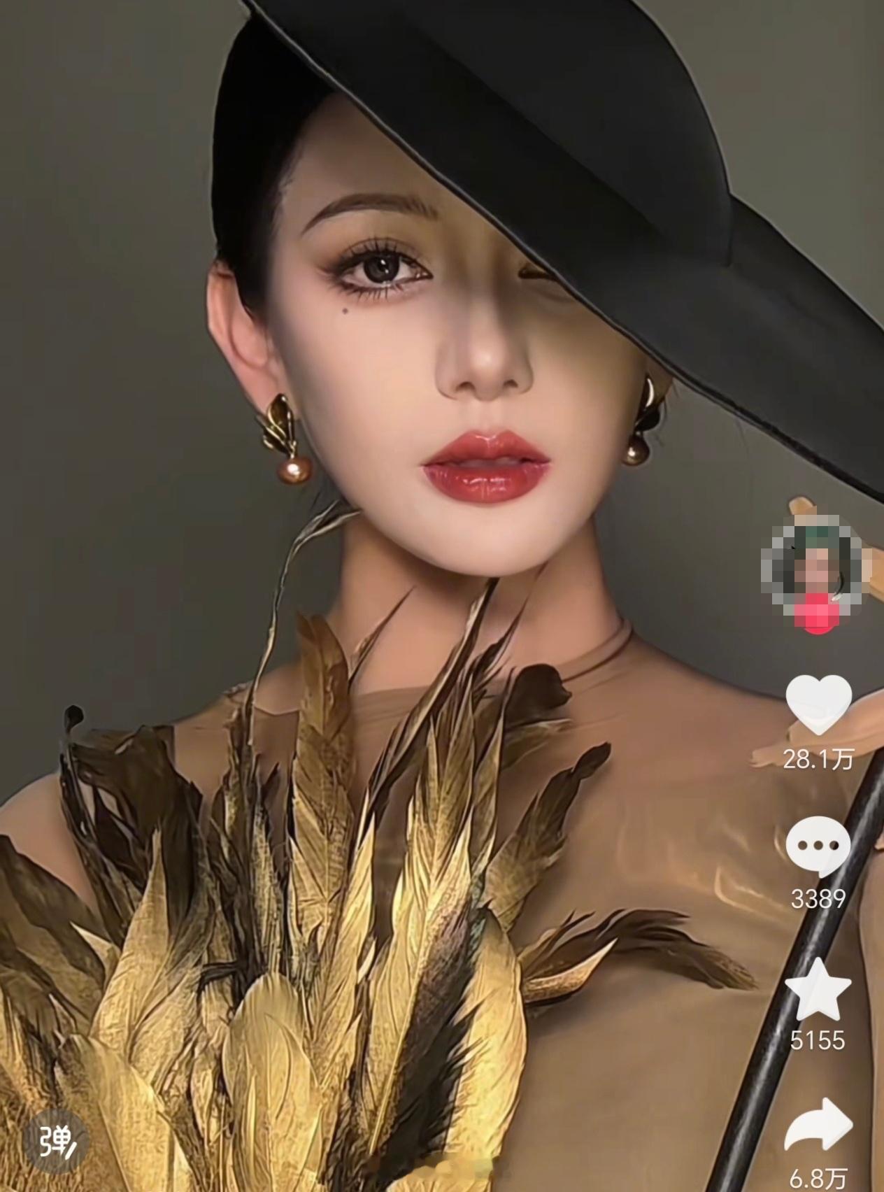 近日抖🎶博主都仿热巴w盛典红毯女王妆