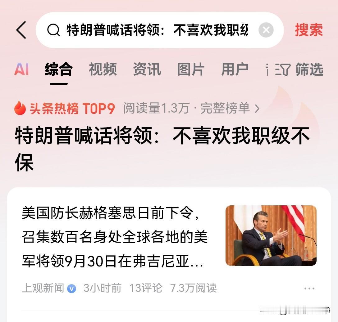 特朗普说话就是这么直接,在美国全球将领集会现场,特朗普也现身并发表了演讲。 特朗普这次倒是没有客气,他对这些将军们表示。 你们想鼓掌就鼓掌,你们想做什么就做什么。 如果你们不喜欢我所说的话,也可以扭头离开。 当然了,那会让你的职位不保的,你的前途将尽毁! 看看这老头,不玩虚的,跟军人沟通就是这么简单直接! 听话的,可以继续当官,不顺从我的你可以扭头离开! 现在大家看明白了吧,这场大会实际上就是未来巨大人事调整之前的,一次准备会而已!