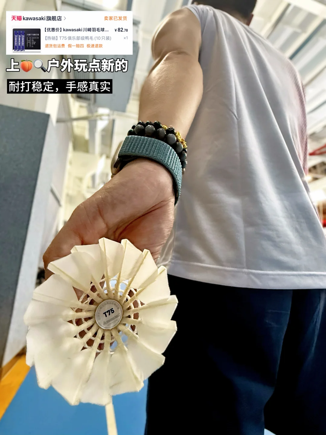 🏸这次自己带了球,买了一桶川崎的T75,鸭毛很耐打,飞行比较稳定、球速较慢,也挺适合新手局。