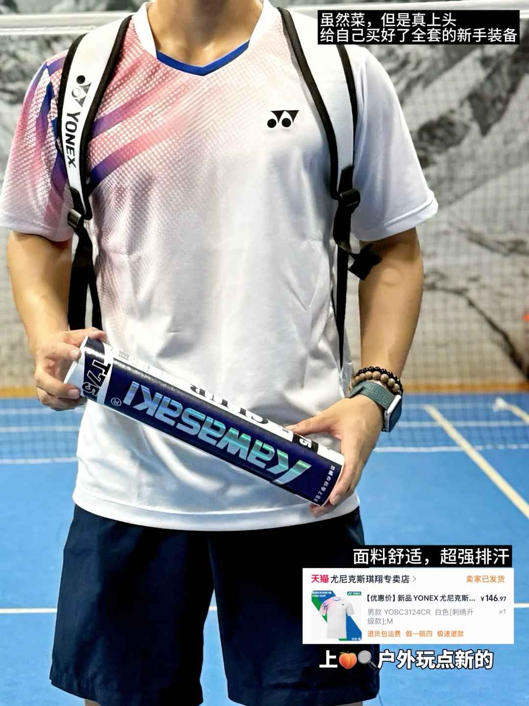 🤾🏼衣服买的尤尼克斯的刺绣款,专业选手经常上身的一件。修身又灵活,还贼拉排汗。一场下来全身都湿了,但出场馆一会儿就速干了。