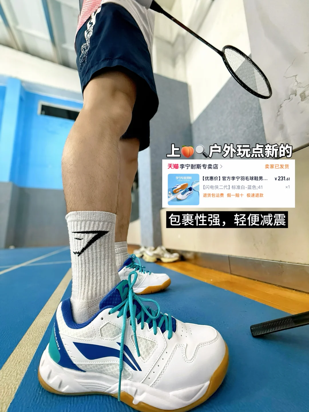 👟鞋子也是李宁的,球鞋是真的得买专业的!包裹性强,移动起来很稳定,也比较透气,打完不会臭脚。
