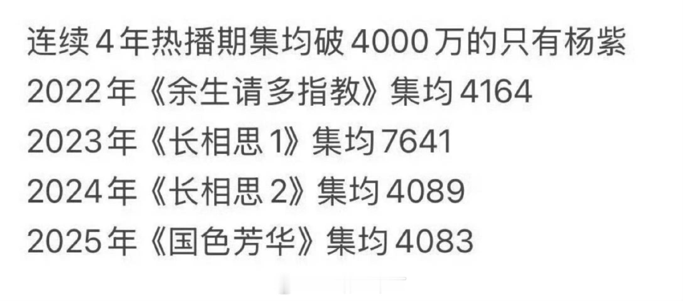 连续4年热播期集均都破4000万的有且只有杨紫!​​​