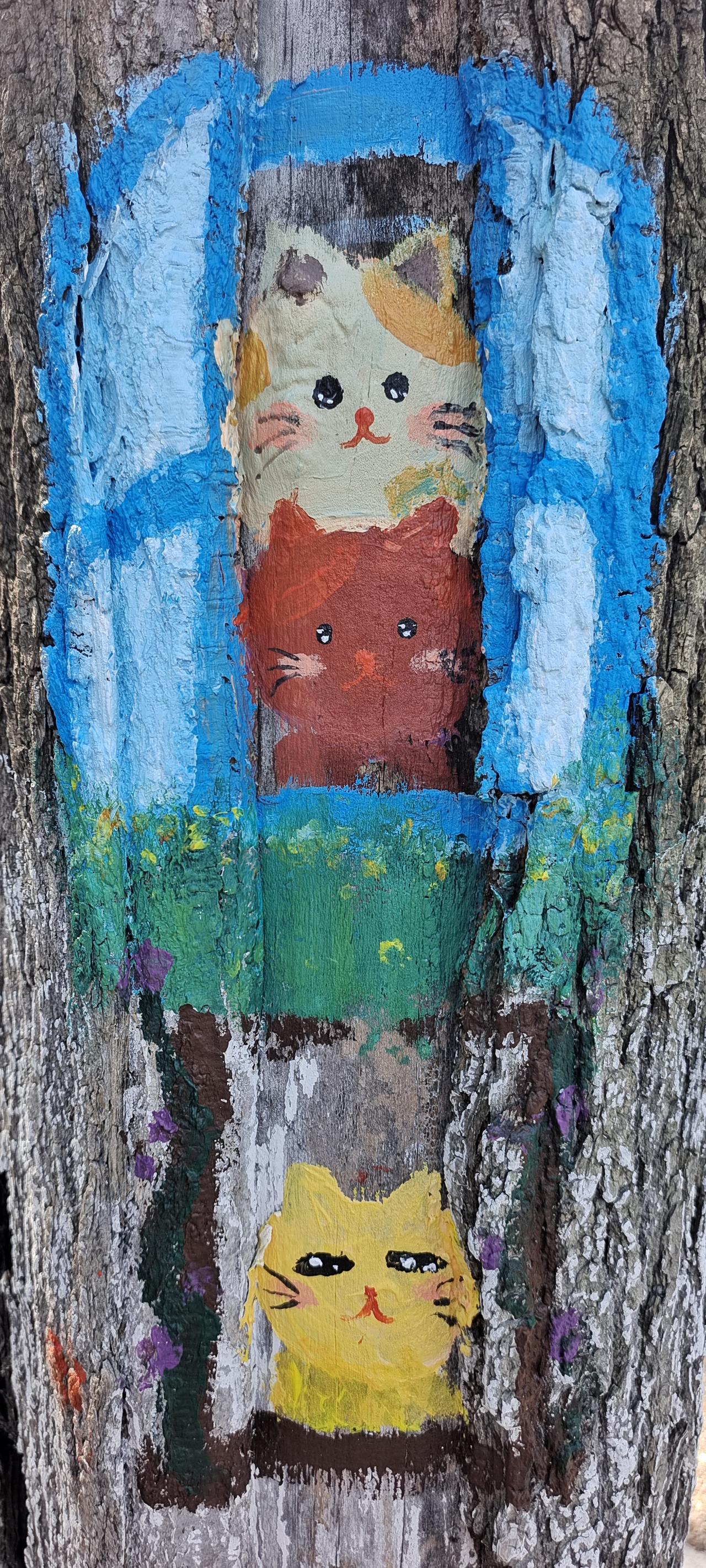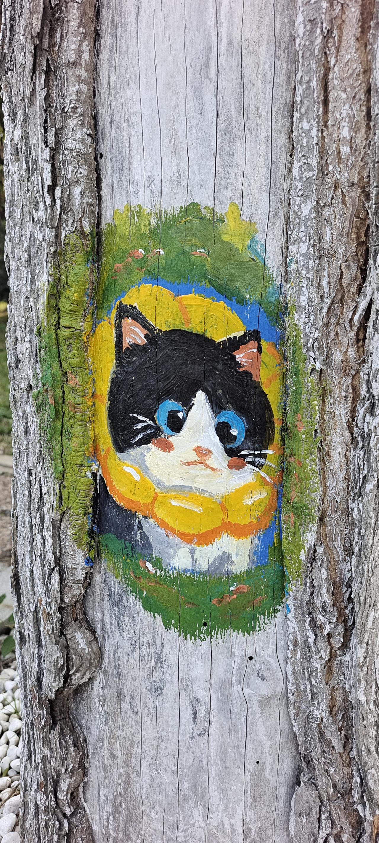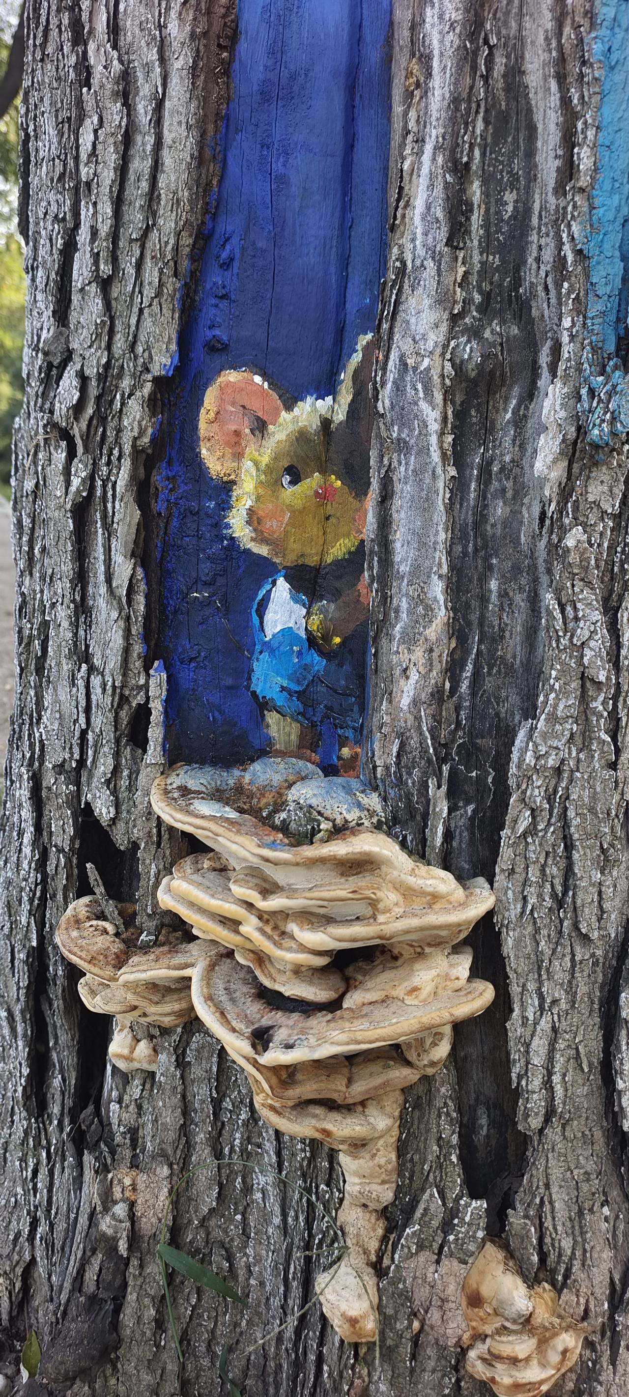 植物园中南路的道边儿上。树洞里面儿花的花清新可爱。色彩斑斓,动感十足。浓浓的童话画风,非常有趣。
