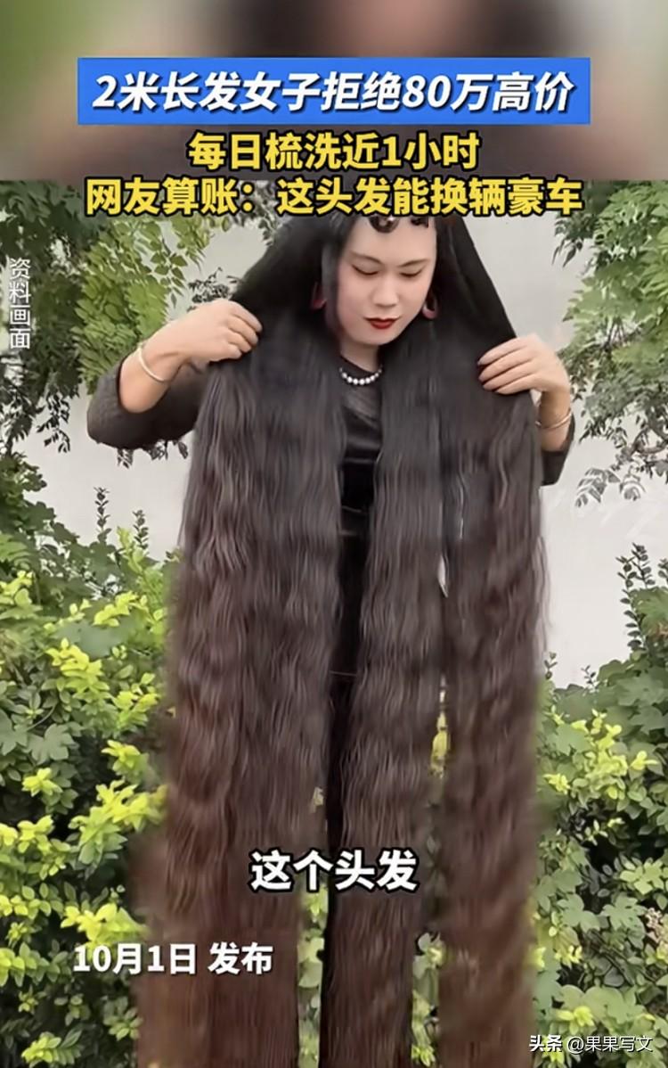 这个女人37岁,从15岁开始没再剪过头发,22年了头发长到了两米长。有人出80万