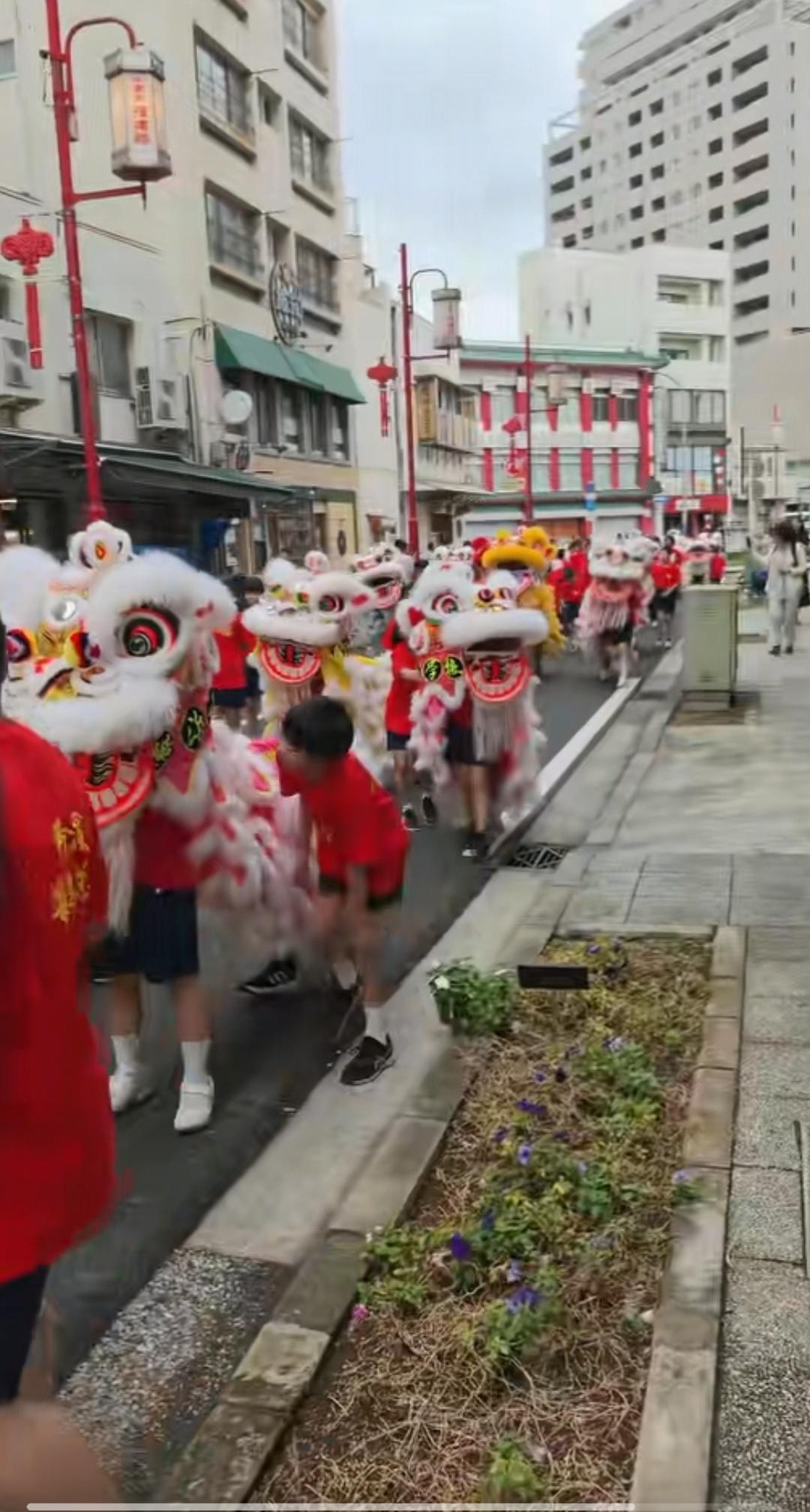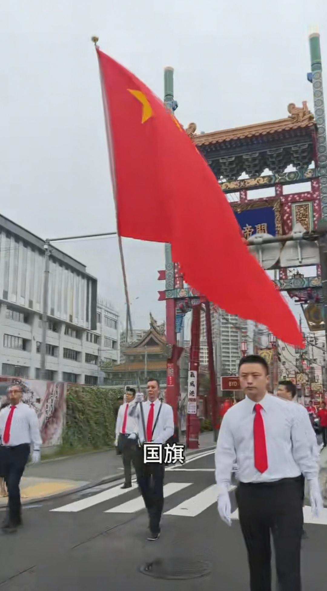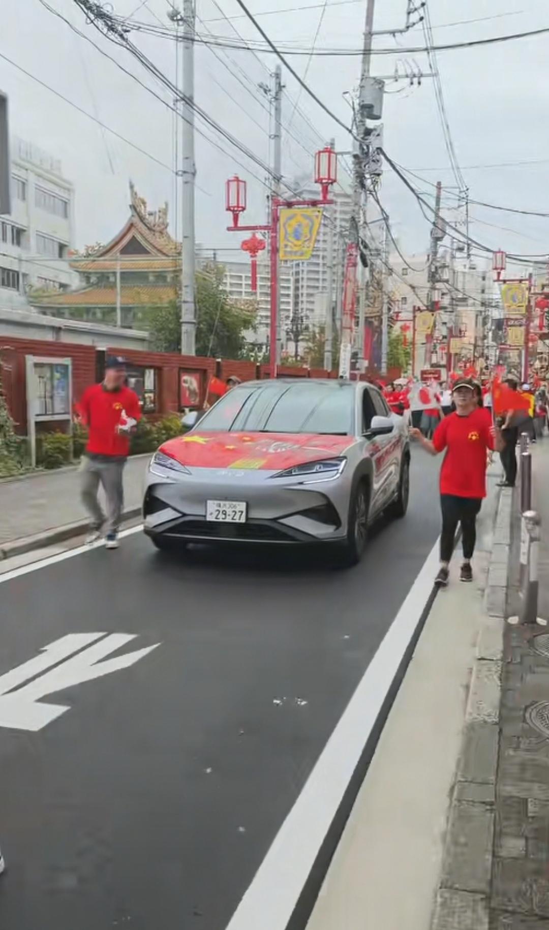 10月1日,日本导演竹内亮在日本参加了中国的国庆节活动,活动地点在日本横滨中华街,这条街道的门牌坊上刻的字是“关帝庙道”。 庆祝活动搞得很隆重,街头的人群排列成游行队伍,大家手中拿着中国国旗和日本国旗,领头的两位男士穿着白衬衫,其他人员穿着红色短袖,有人拿着喇叭大喊“中华人民共和国万岁”,然后大家跟着一起喊叫。 还有穿着56个民族服装的女士手上拿着花欢快的跟着游行队伍。还有比亚迪车上贴着宣传“庆祝国庆”的字样。庆祝队伍中还有一群小朋友以及舞狮子表演。拿着日本国旗的也在高声喊叫“中日友好万岁”。 不得不说大家都在牵挂着祖国,即使身在异国,外国友人也为中国的强大发自内心的祝福。