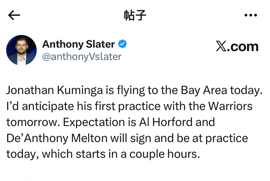 霍福德和梅尔顿今天会签约并参加训练 训练将在几个小时后开始