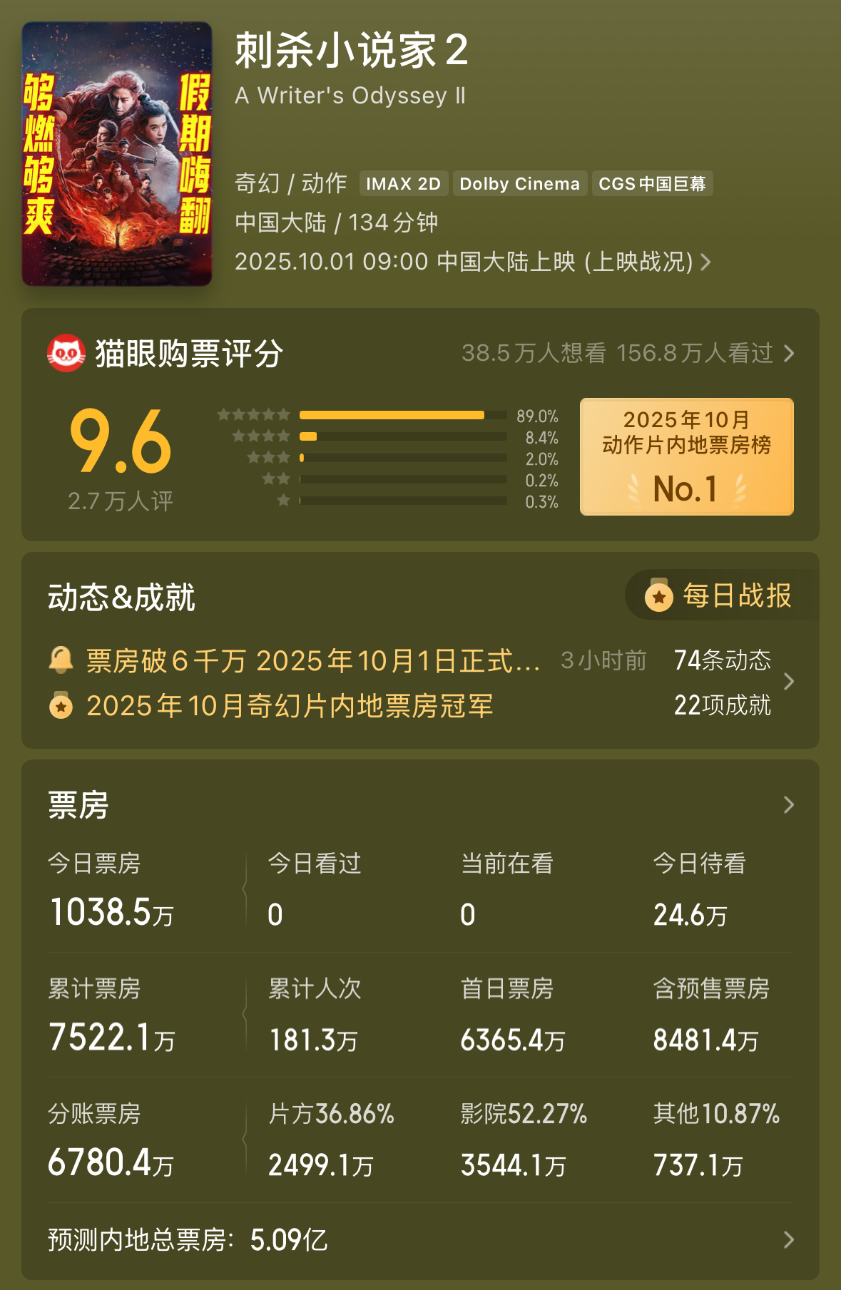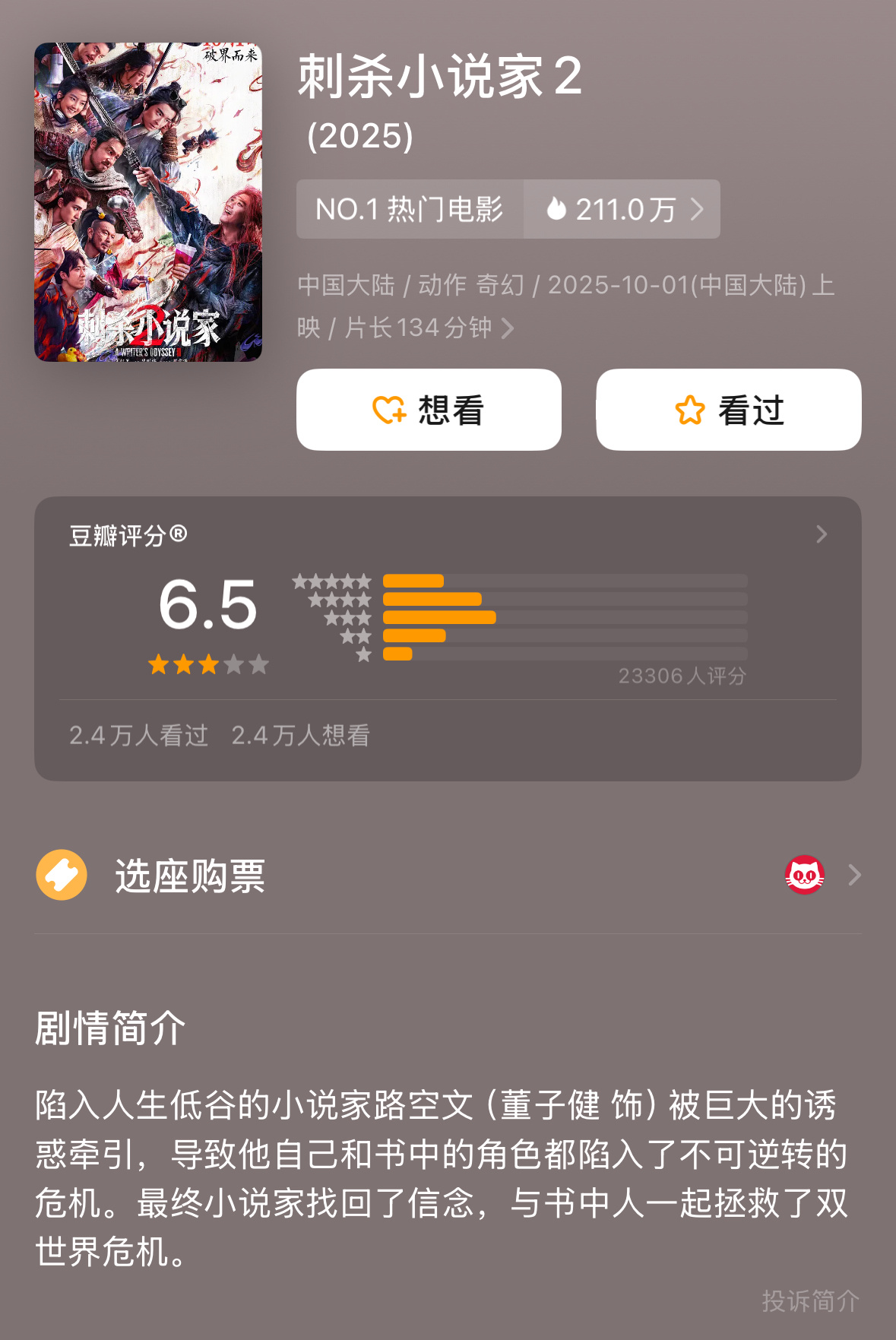 邓超、董子健、雷佳音《刺杀小说家2》开分6.5