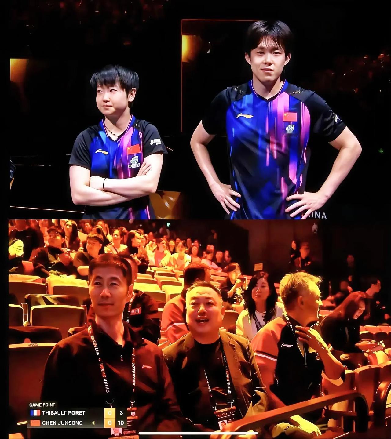 莎头的比赛刘国梁和王励勤都来了好久不见梁子笑容满面的,梁子还是喜欢混双的今