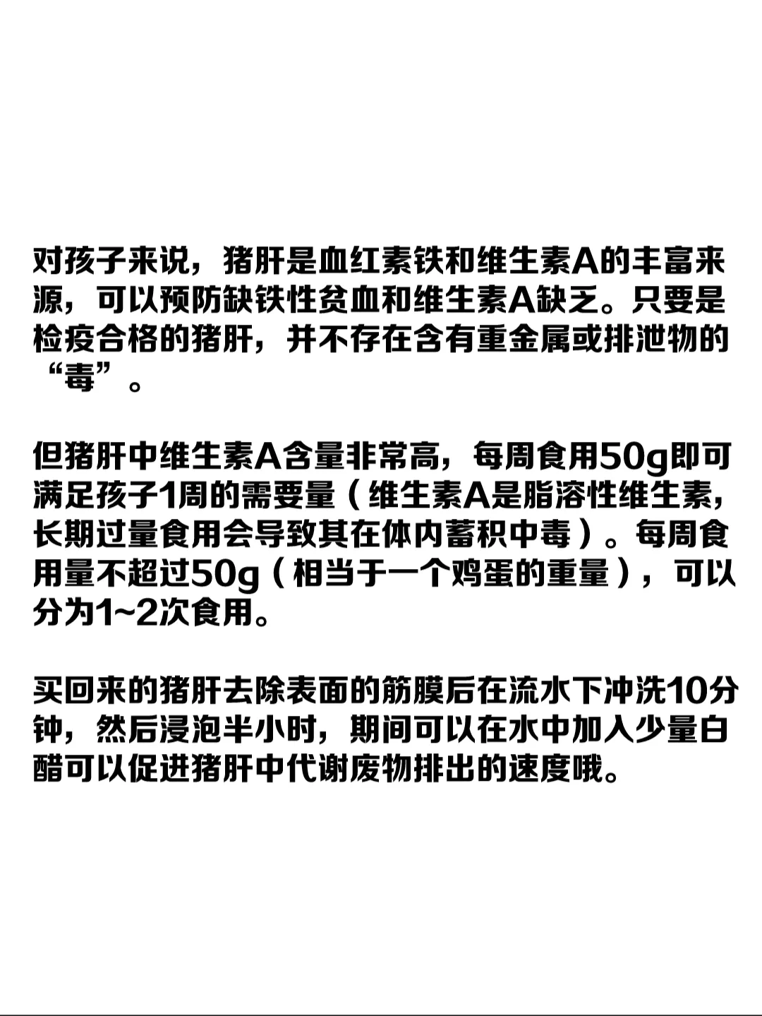 对孩子来说,猪肝是血红素铁和维生素A的丰富来源,可以预防缺铁性贫血和维生素A缺乏。具体吃多少,你知道吗?