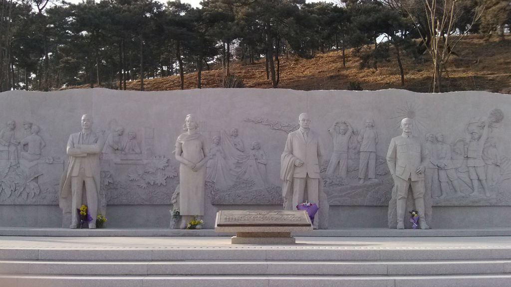无名英雄纪念碑正前方,自南至北依次是陈宝仓、朱枫、吴石、聂曦四人的雕像,雕像自西山上俯瞰北京城。