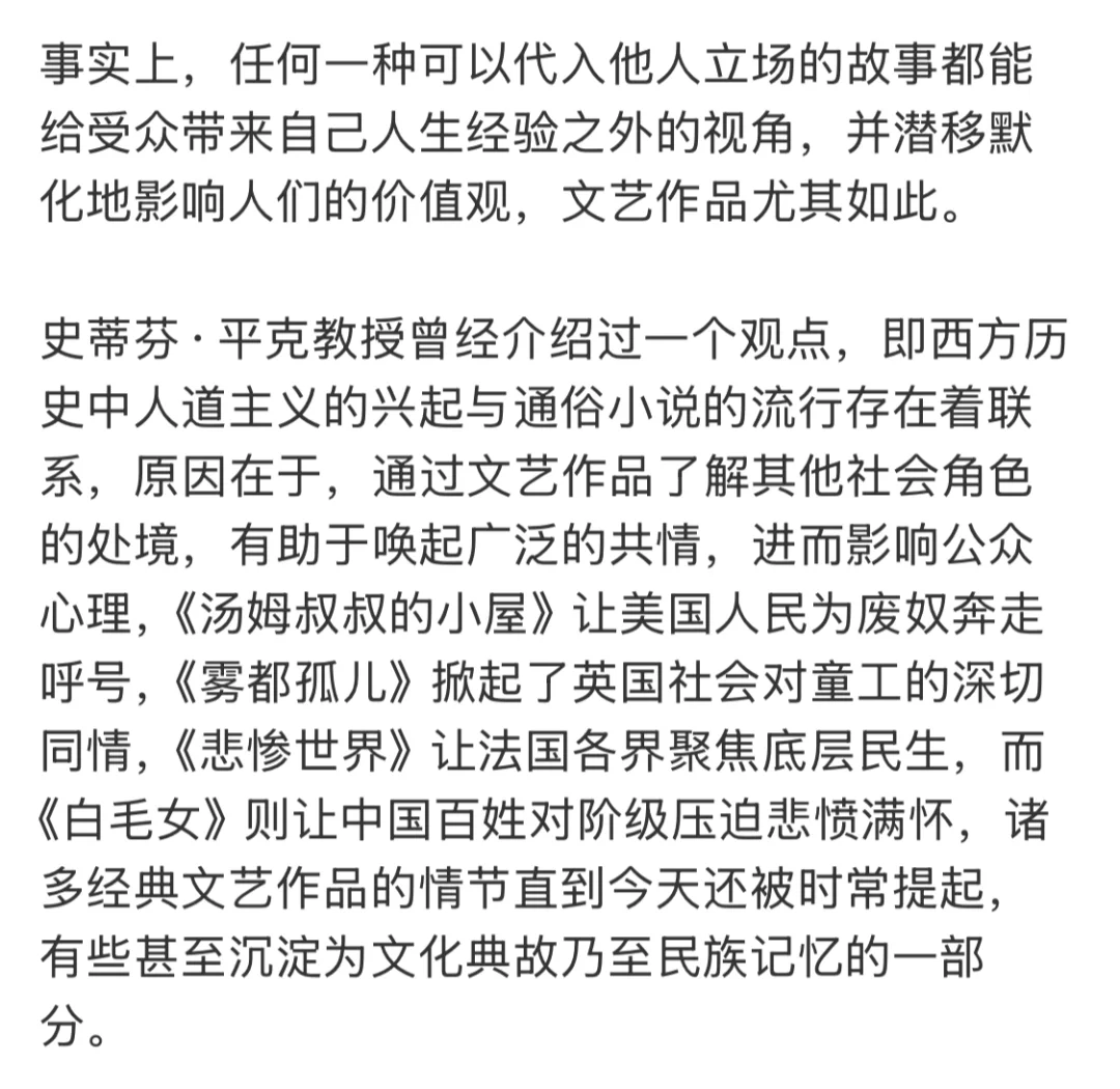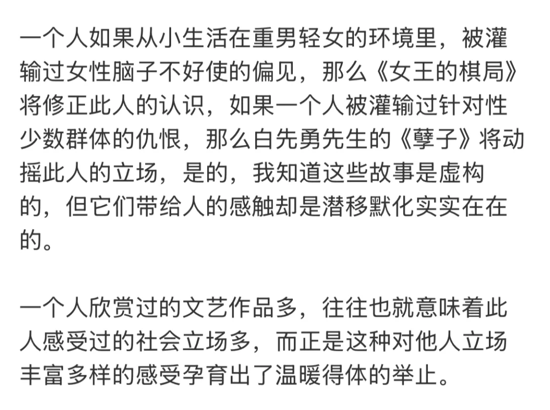 一个人读的故事多,设身处地的能力也会增强,这是文学作品的意义之一