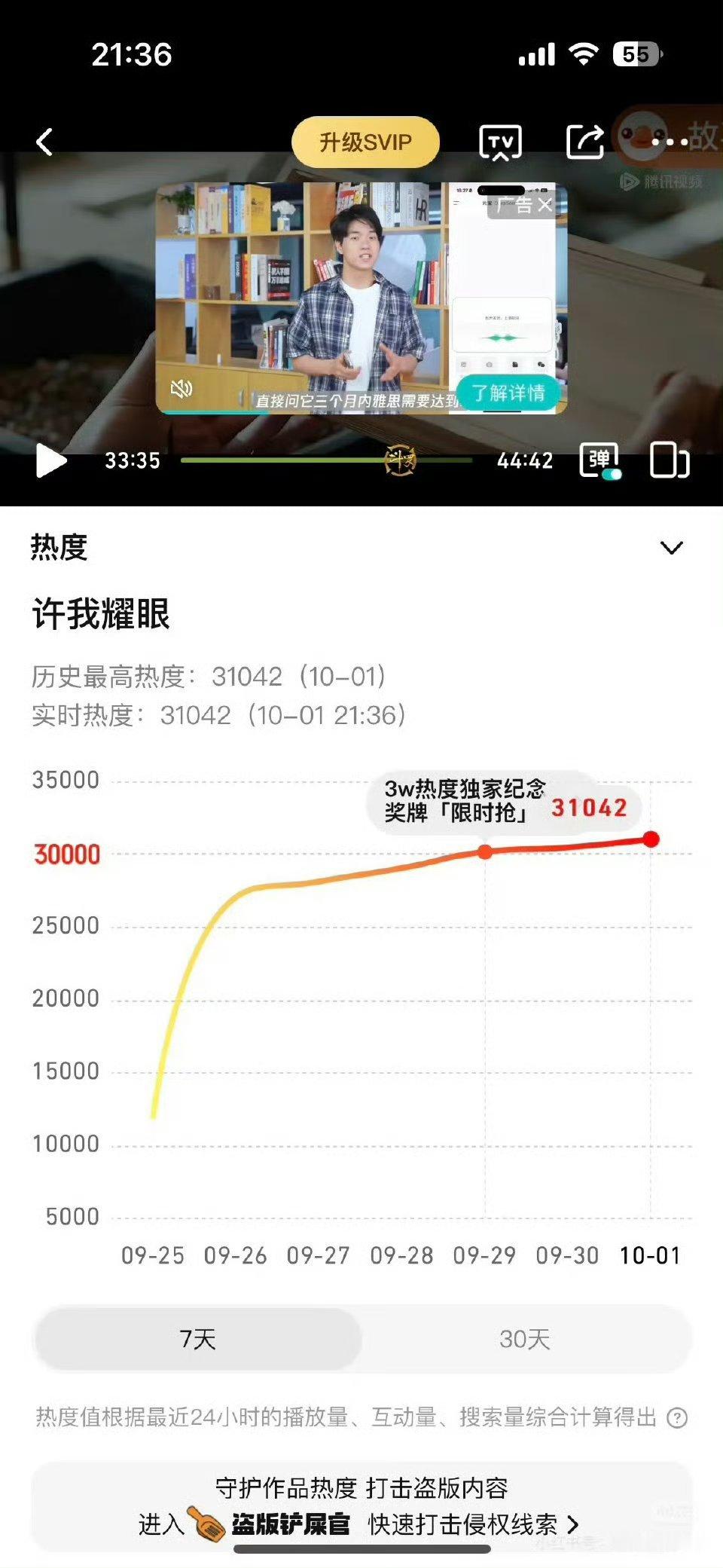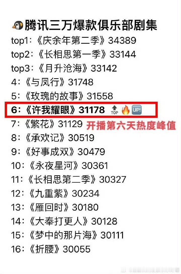 许我耀眼开播第六日热度突破31000!这还没播到离婚后最高潮的地方呢,热度轻轻松