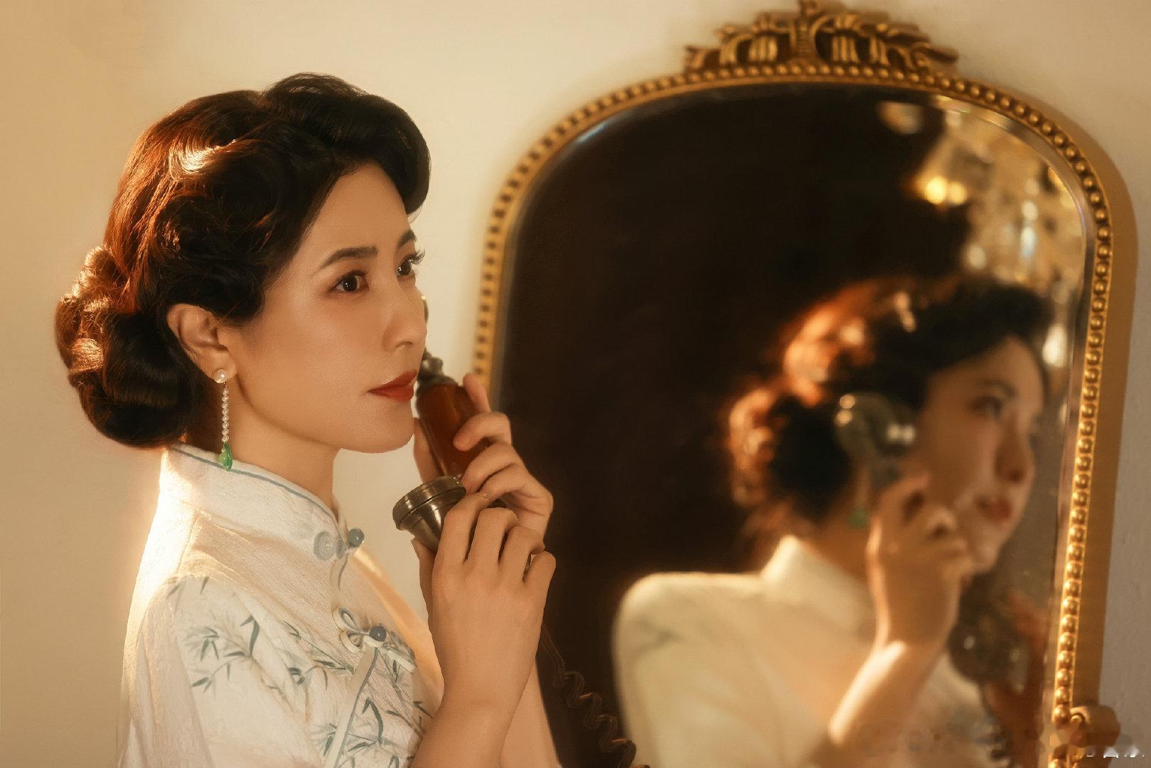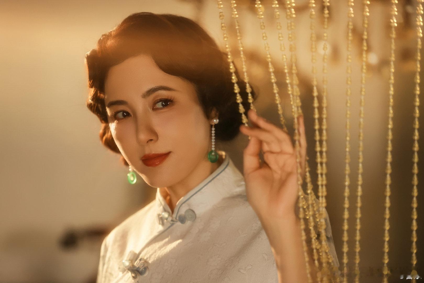 看她饰演的王碧奎出场时,终于懂了什么叫「从水墨画里走出来的人」。眉如远山含黛,目似秋水横波,一颦一笑都带着江南烟雨的朦胧诗意。戏外她的旗袍造型更是绝杀!素白旗袍勾勒出典雅身段,珍珠耳坠在鬓边轻轻摇曳,纤手掀开珠帘回眸浅笑——这一刻仿佛看见整个江南的春水与杏花都在她眼波里流动。