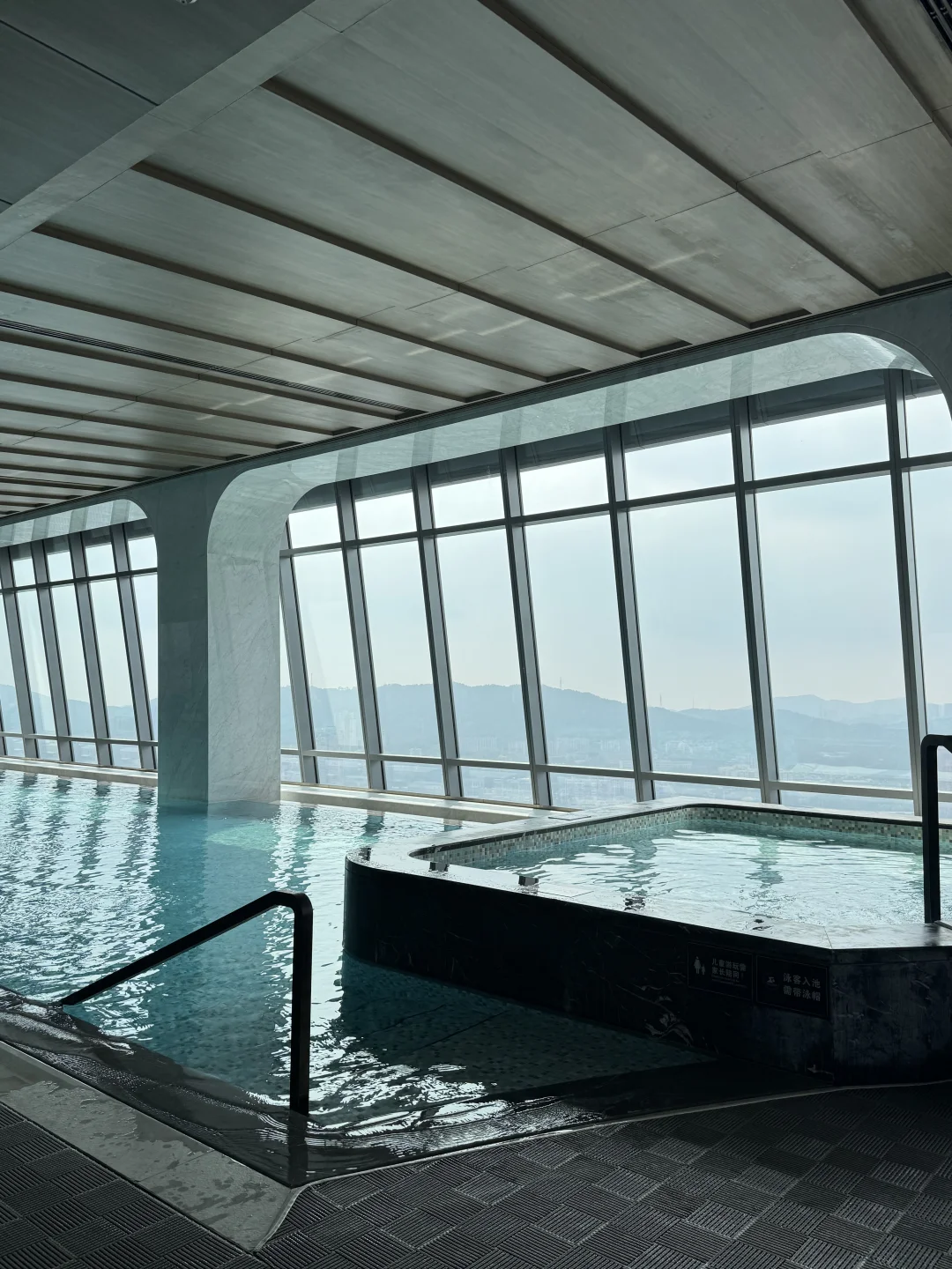 [向右R]高空泳池,人少水好 恒温 需要戴泳帽,有的热水池♨️ 女士换衣房也有桑拿和泡池