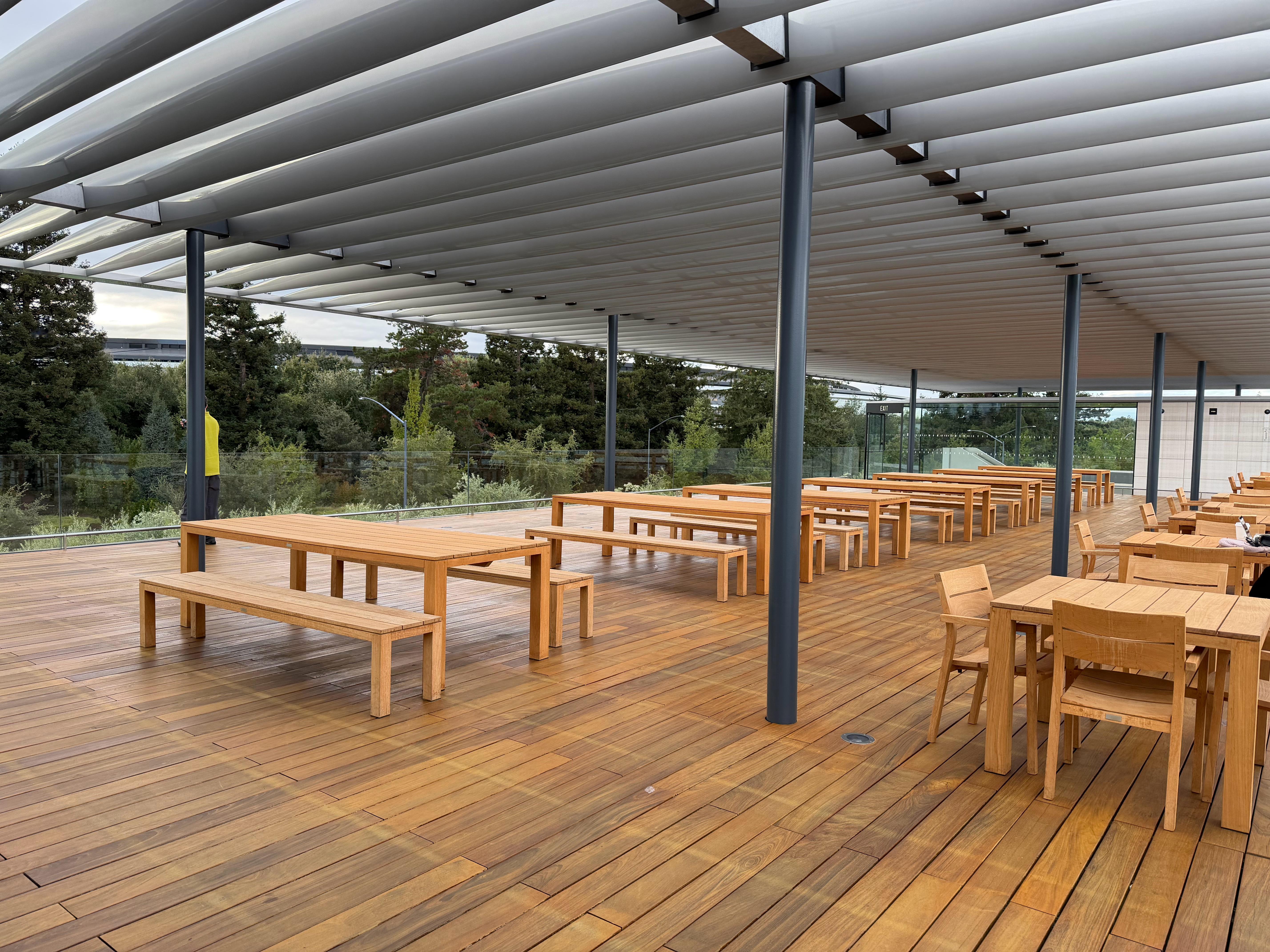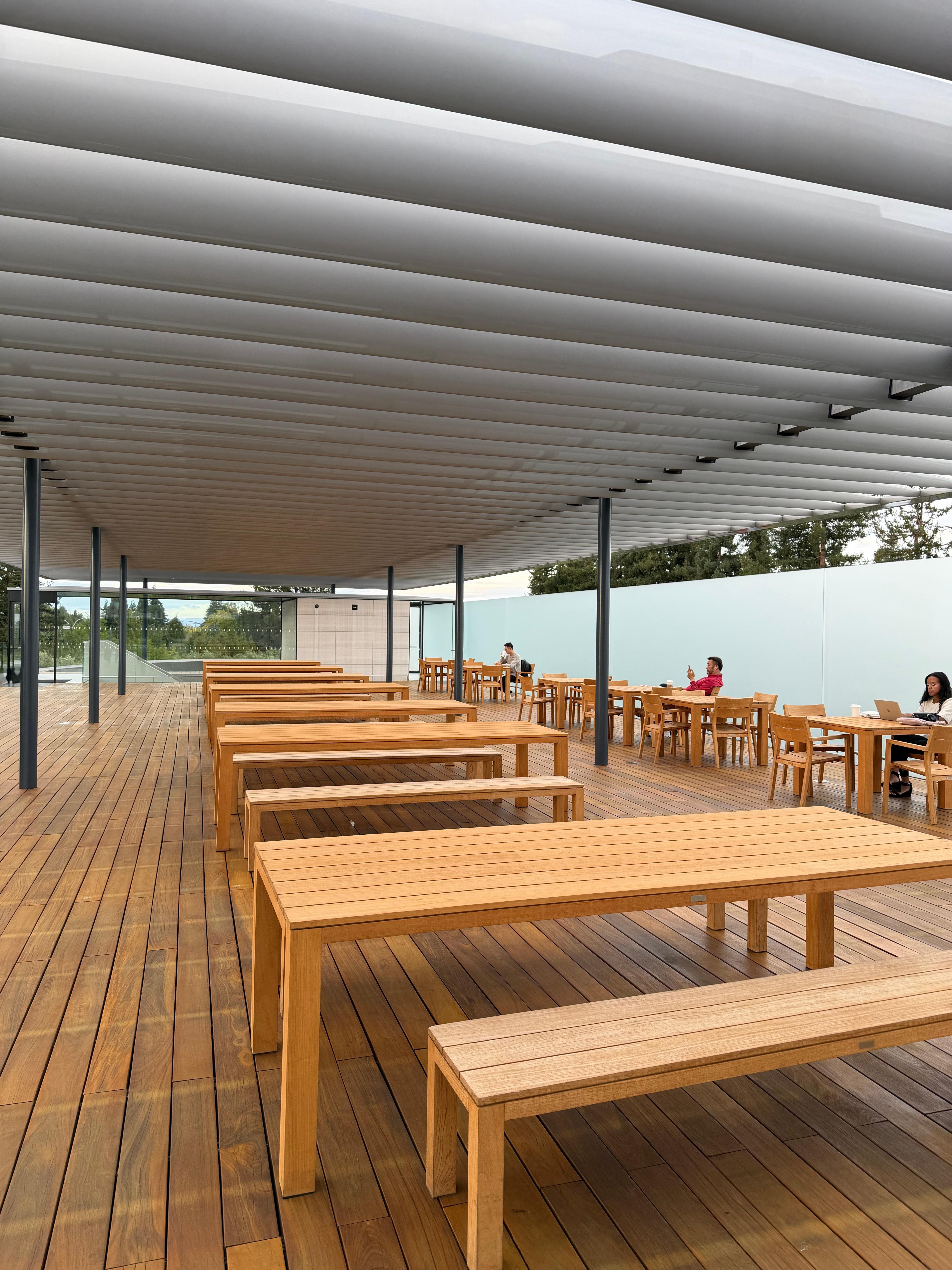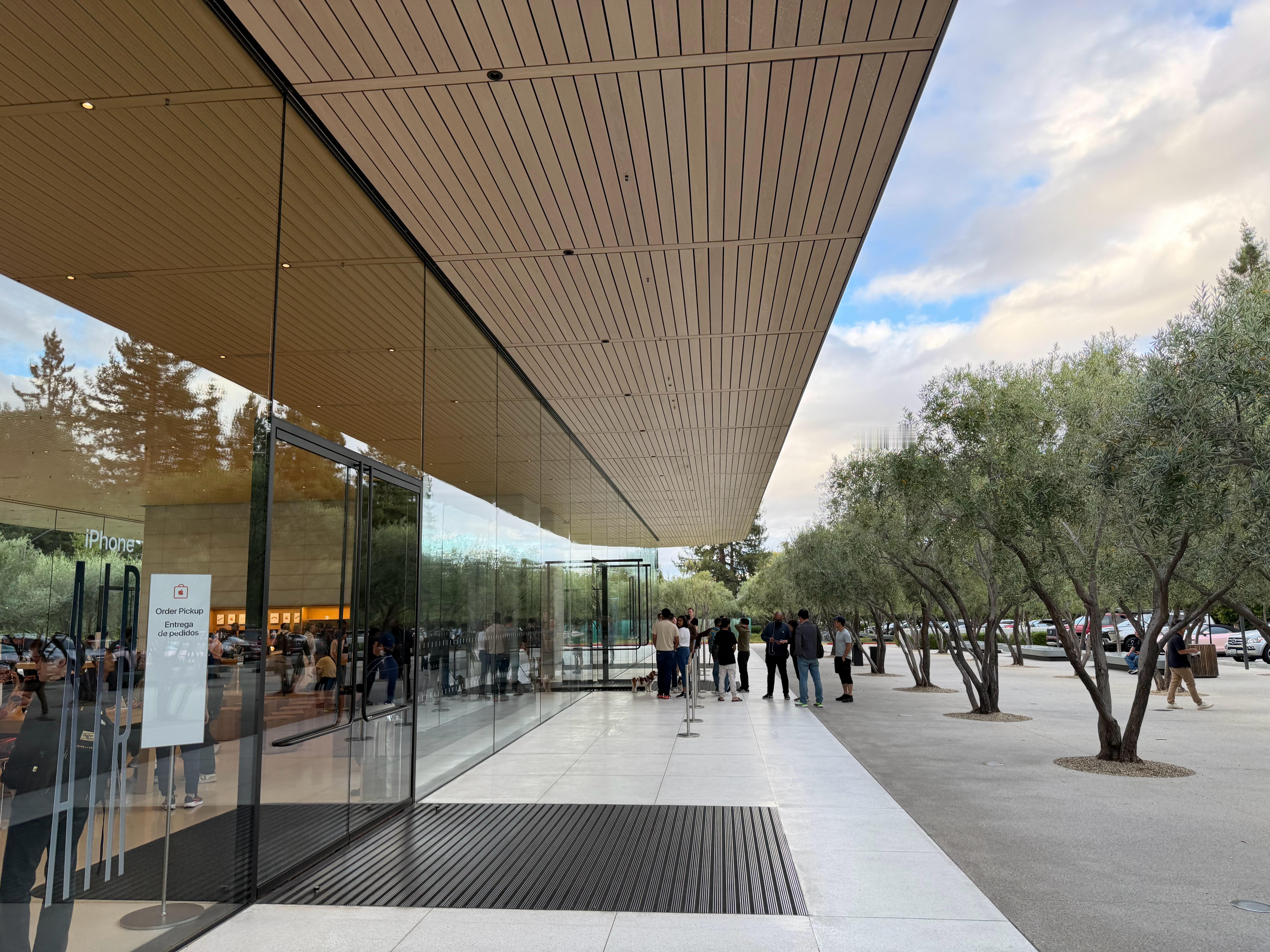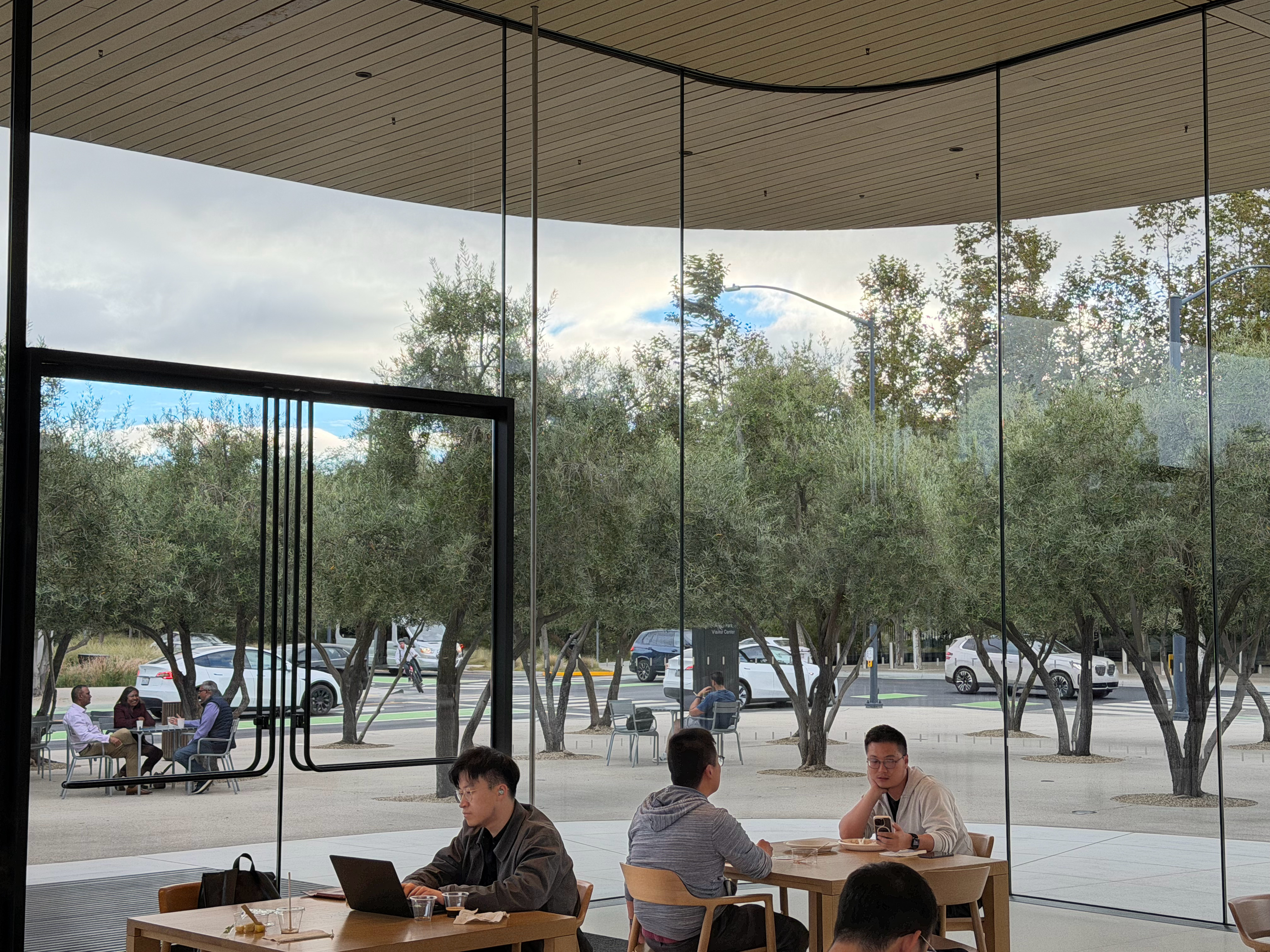 下了火车打车前往苹果总部,一路上都是乡村的景象,当圆环形的Apple Park展现在面前,甚至有点不敢相信,这真的就是在无数参加发布会的博主视频,还有无数发布会中出现过的场景啊!现场中国人来打卡的非常多,和其他朋友聊天这家店已经开了8年。