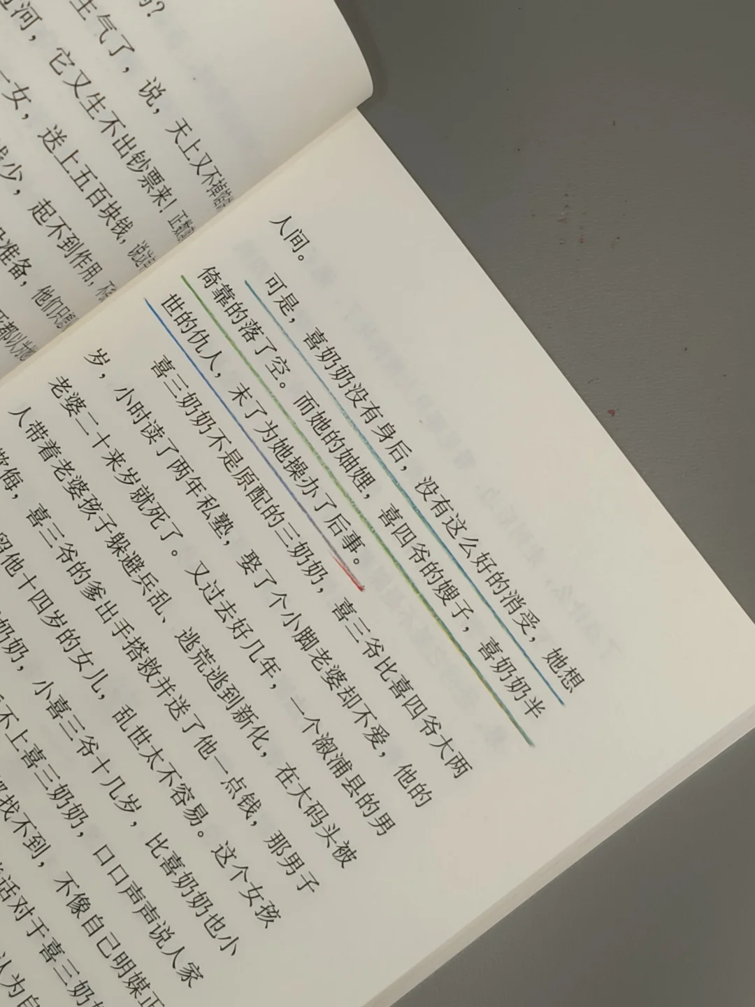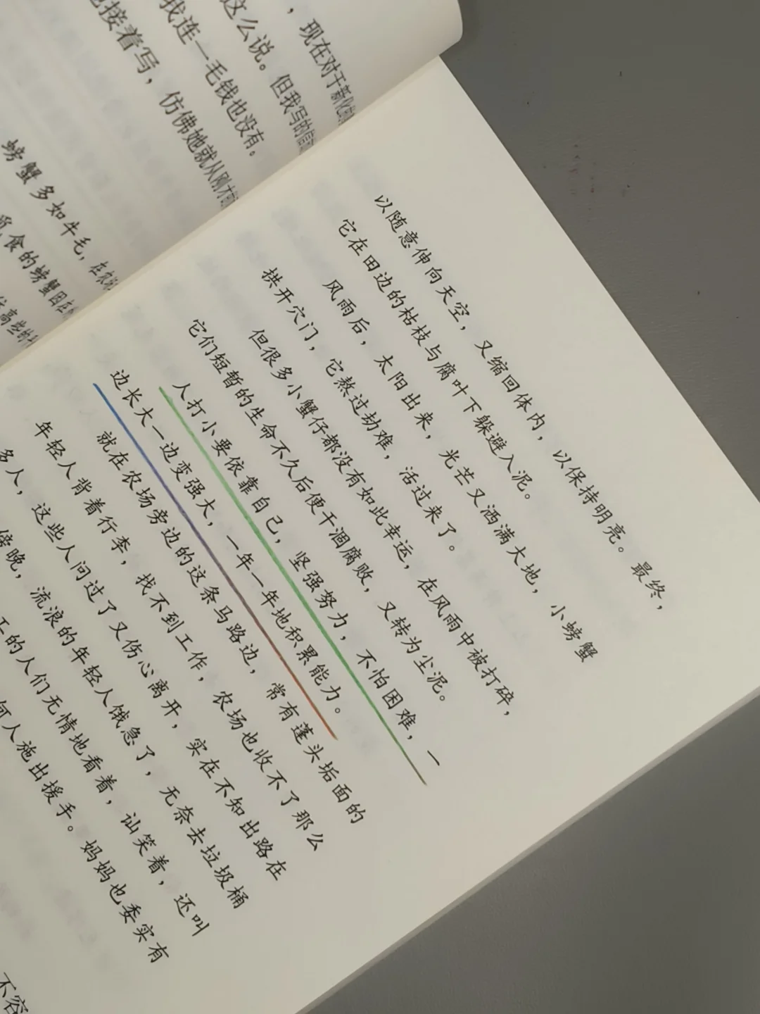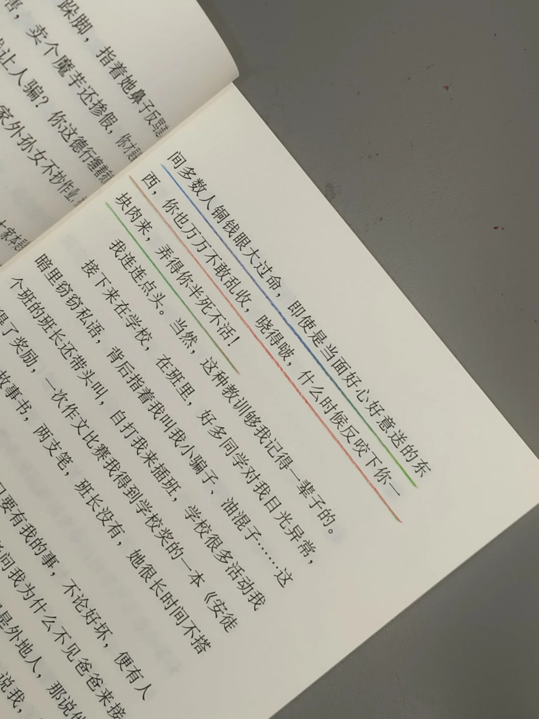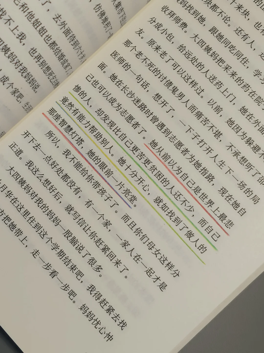故事以“我”为视觉展开,以孩童的视觉观察成人世界,以孩童的口吻自然而然的叙述,质朴又饱含深情,这种真实感,让我有了强烈共鸣,仿佛书中的“我”是我,是她,也是我自己,亲身感受她的喜怒哀乐、艰难困苦,一同经历着生活的风风雨雨。