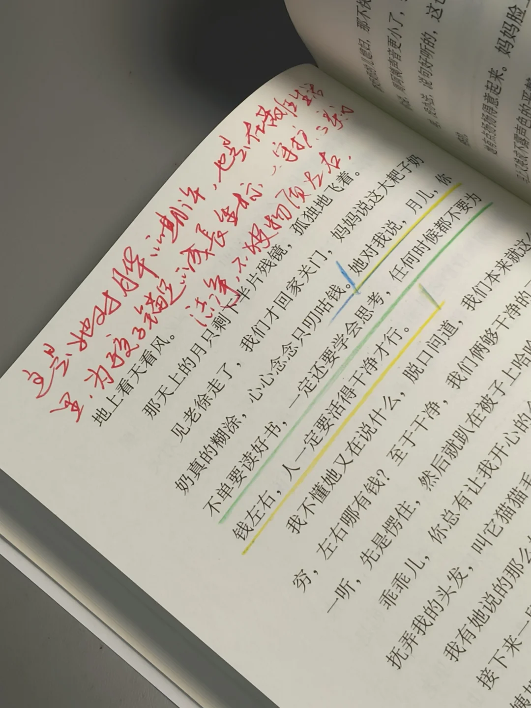 “月儿,你不单要读好书,一定还要学会思考,任何时候都不要为钱左右,人一定要活得干净才行。”