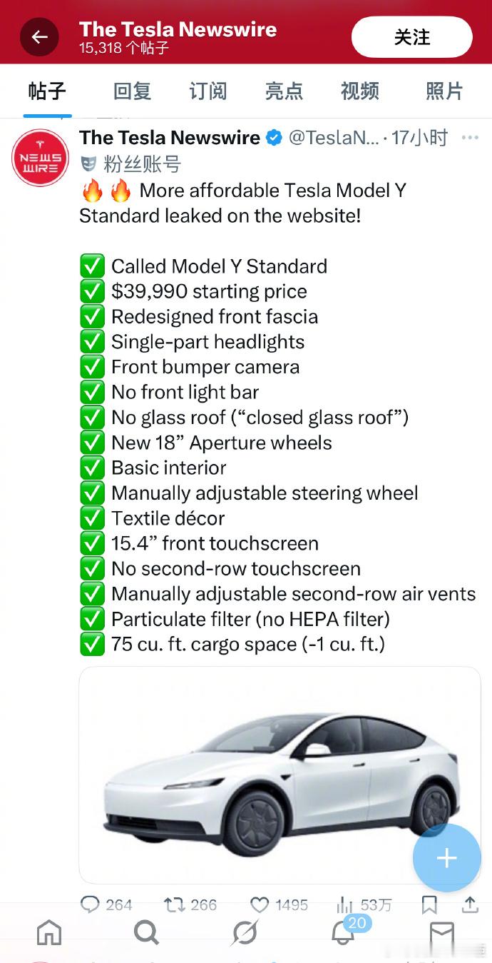 特斯拉低价ModelY或很快推出近日,有消息称,备受期待的特斯拉ModelY低