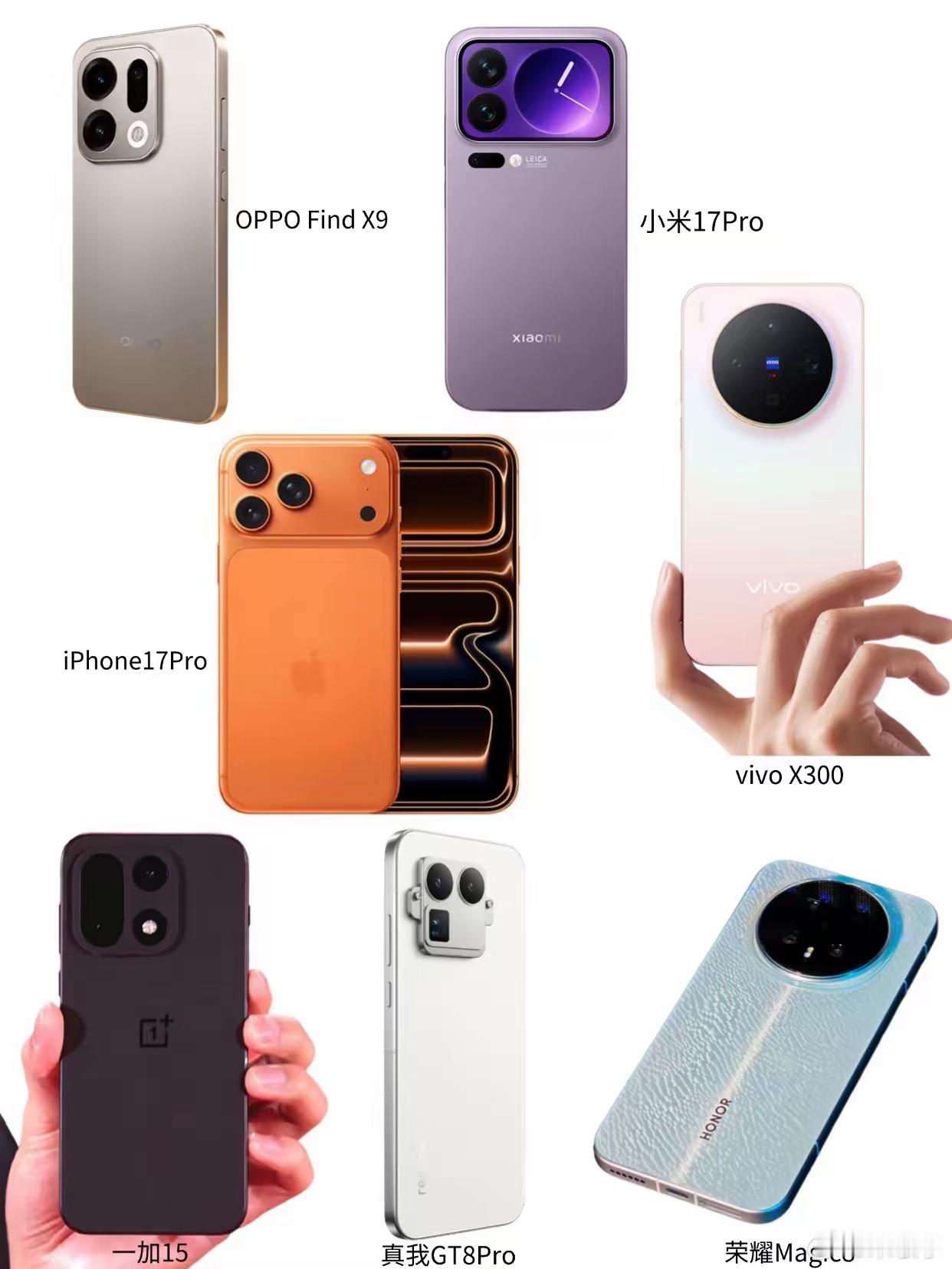 新一波安卓旗舰设计全部揭晓:小米17系列、vivo X300、荣耀Magic8、OPPO Find X9、一加15、真我GT8 Pro,大家觉得哪家镜头模组更好看[并不简单]? 打卡快乐十一