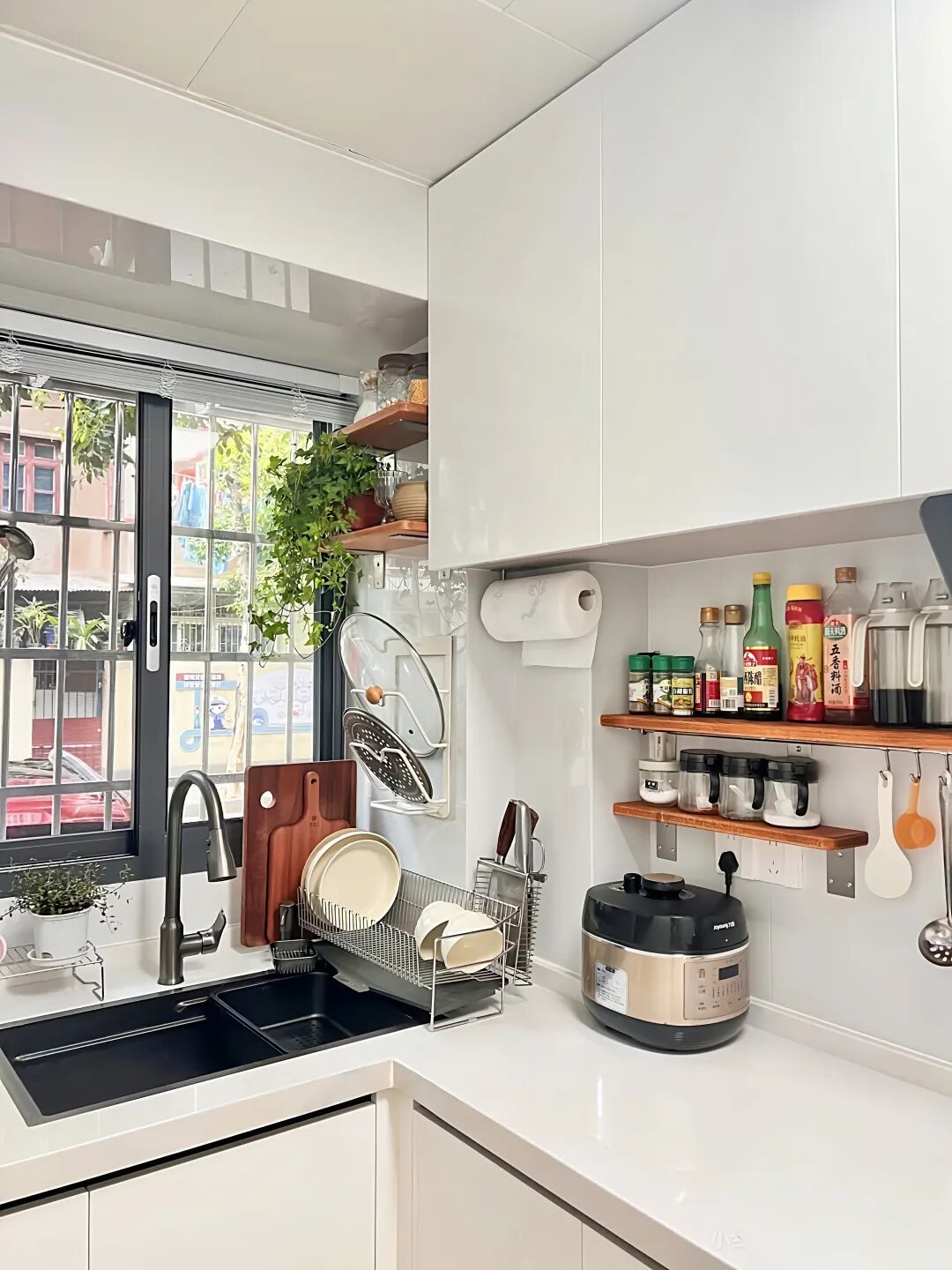 如果我们家的厨房空间足够宽敞,可以摆个置物架!无论是收纳蔬菜,还是其它食材,它简直是厨房的小万能工具,能让我们的厨房瞬间变得有序又高效。