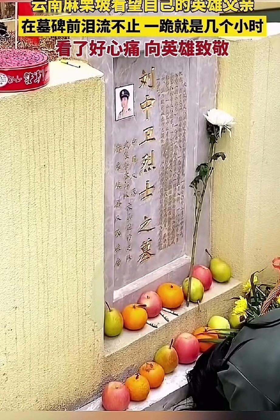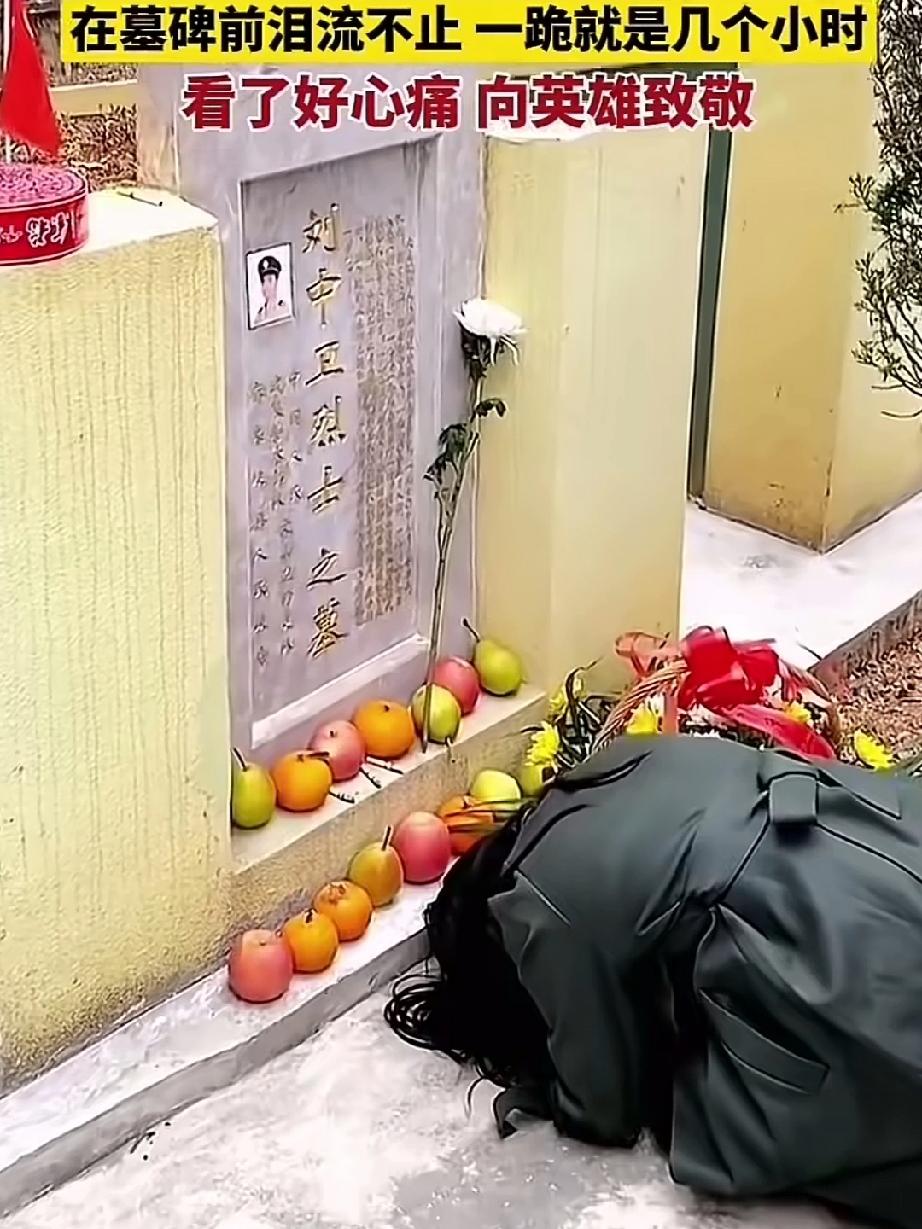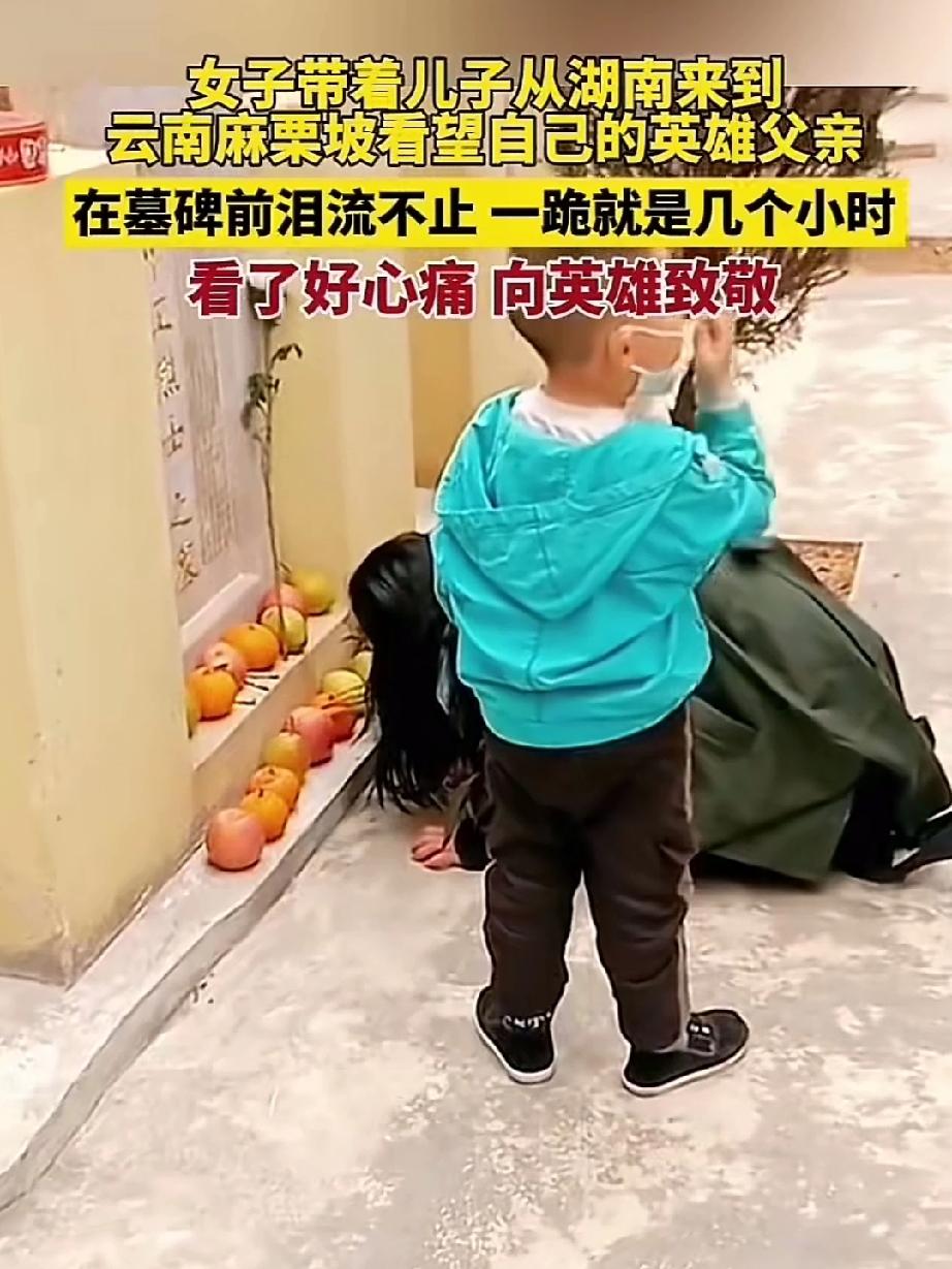 女子带儿子从湖南来到云南麻栗坡看望自己的英雄父亲,在碑前泪流不止,一跪就是几个小时!让人看了好心疼! 这阴阳两隔的思念跪了几个小时都没与父亲诉说完,这就是英雄女儿对父亲最高思念的礼仪,跪在墓碑前埋头痛哭,没见英雄女儿抬起过头,别哭了英雄一定会听到女儿的诉说。 英雄女儿很年轻父亲就成为烈士,女子节哀吧!父亲为国捐躯,顾了大家舍去小家,人们会永远记念他的,致敬英雄致敬英雄女儿!