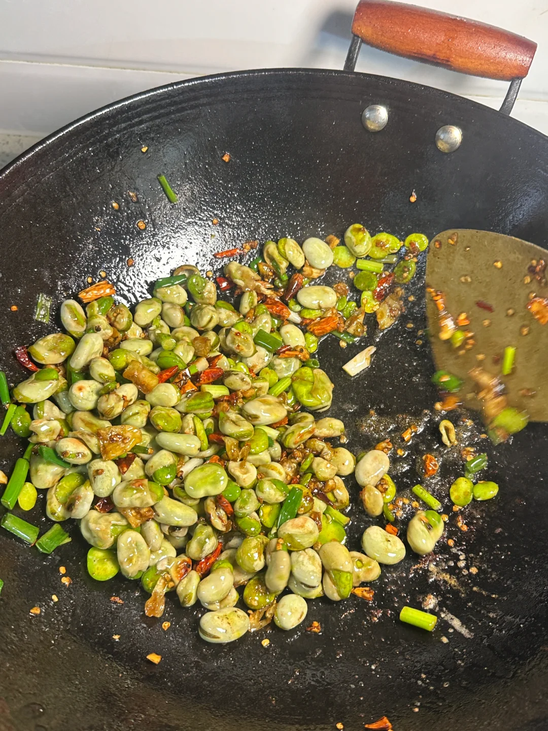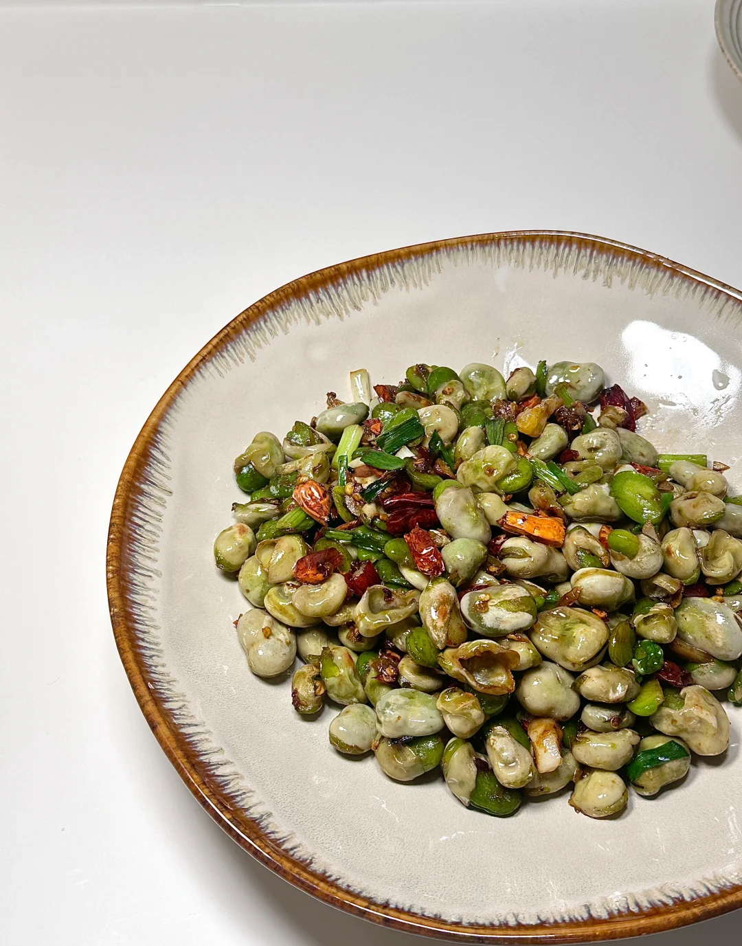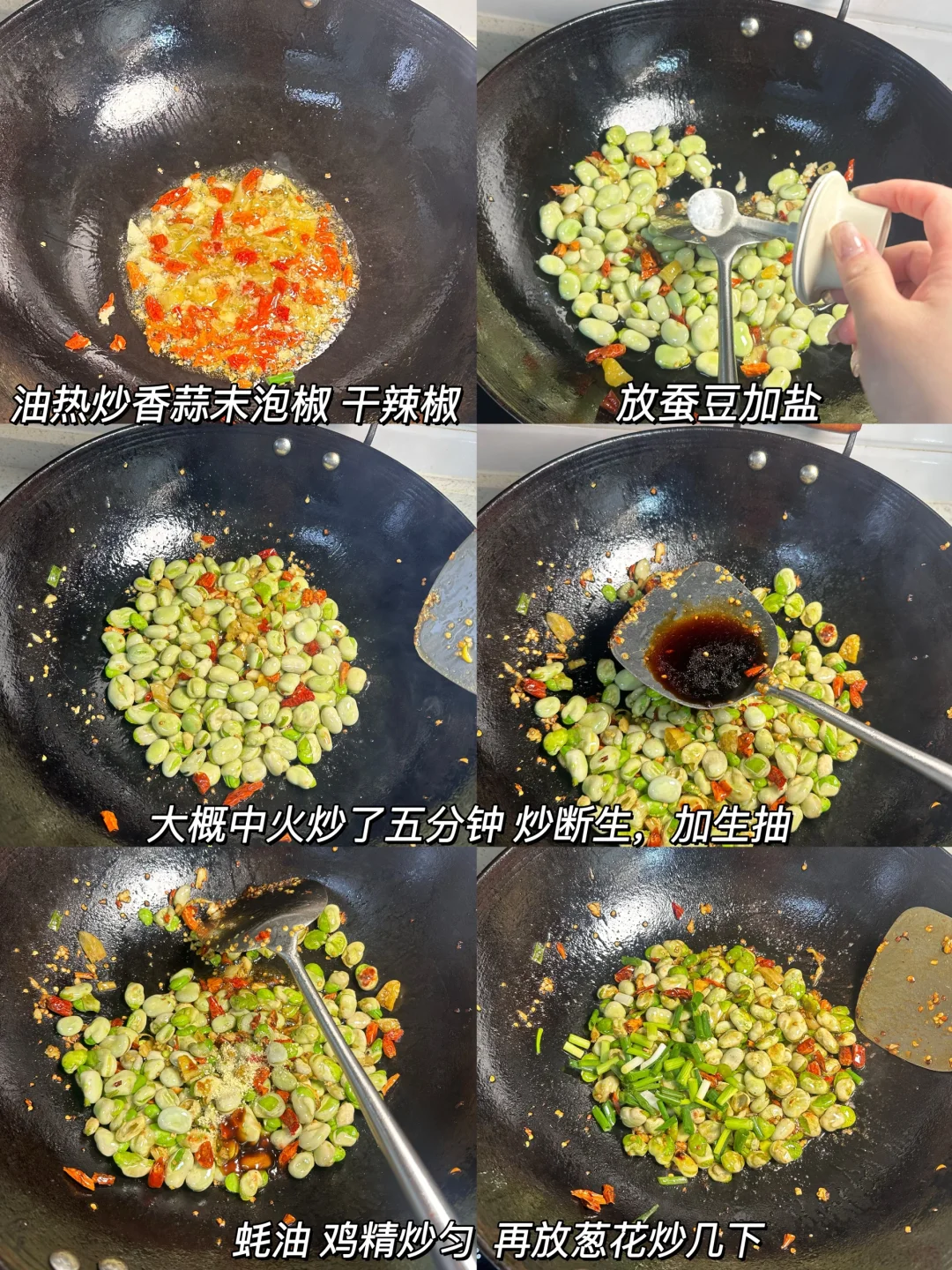 喜欢的蚕豆的可以试试这样做 辣口的停不下来,代替主食吃了[萌萌哒R] 各种做法都吃不腻[赞R]的三餐四季 ✨食材:蚕豆 蒜末 干辣椒碎 泡椒碎 葱花 1️⃣:锅里油热放蒜末辣椒炒香,倒入蚕豆加盐中火炒五分钟左右,加生抽 蚝油 鸡精大火炒香。起锅前加葱炒几下就可以啦。 好好吃饭呀🖖🏻