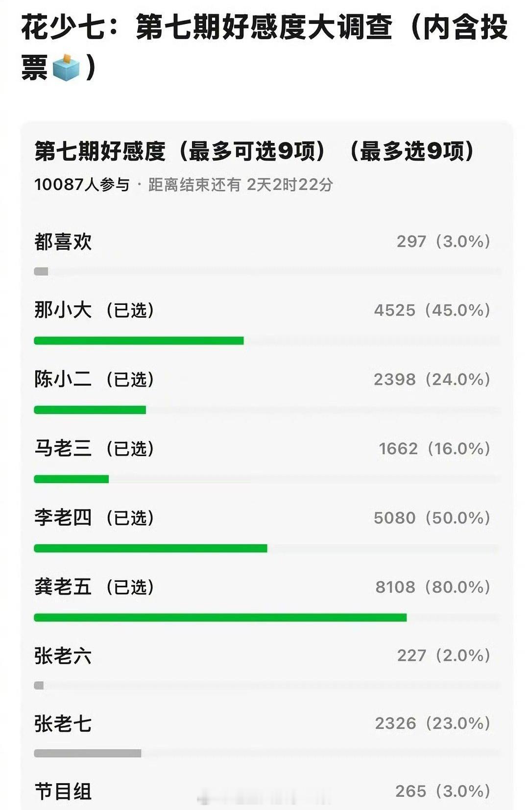 花少7好感度投票🈶龚俊、张晚意、马思纯、李沁、陈数、那英