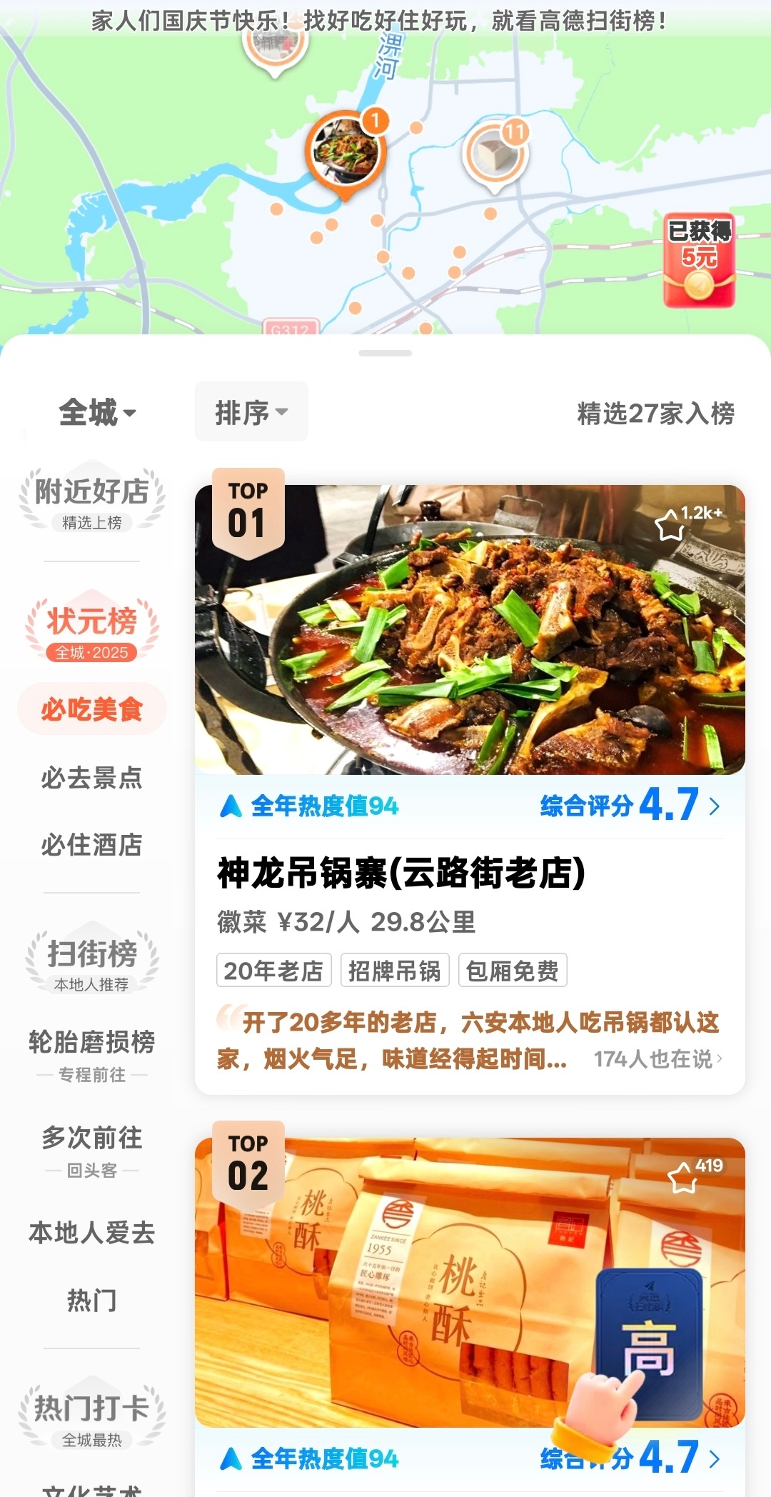 高德扫街榜上线才23天,就有超4亿用户在上面逛吃逛喝找乐趣!高德扫街榜用户超4亿,国庆当天,各种特色烟火小店流量直接翻了3倍,本地餐饮订单量也暴涨1.5倍,给线下服务业带去了数千万的客流,人气在线!