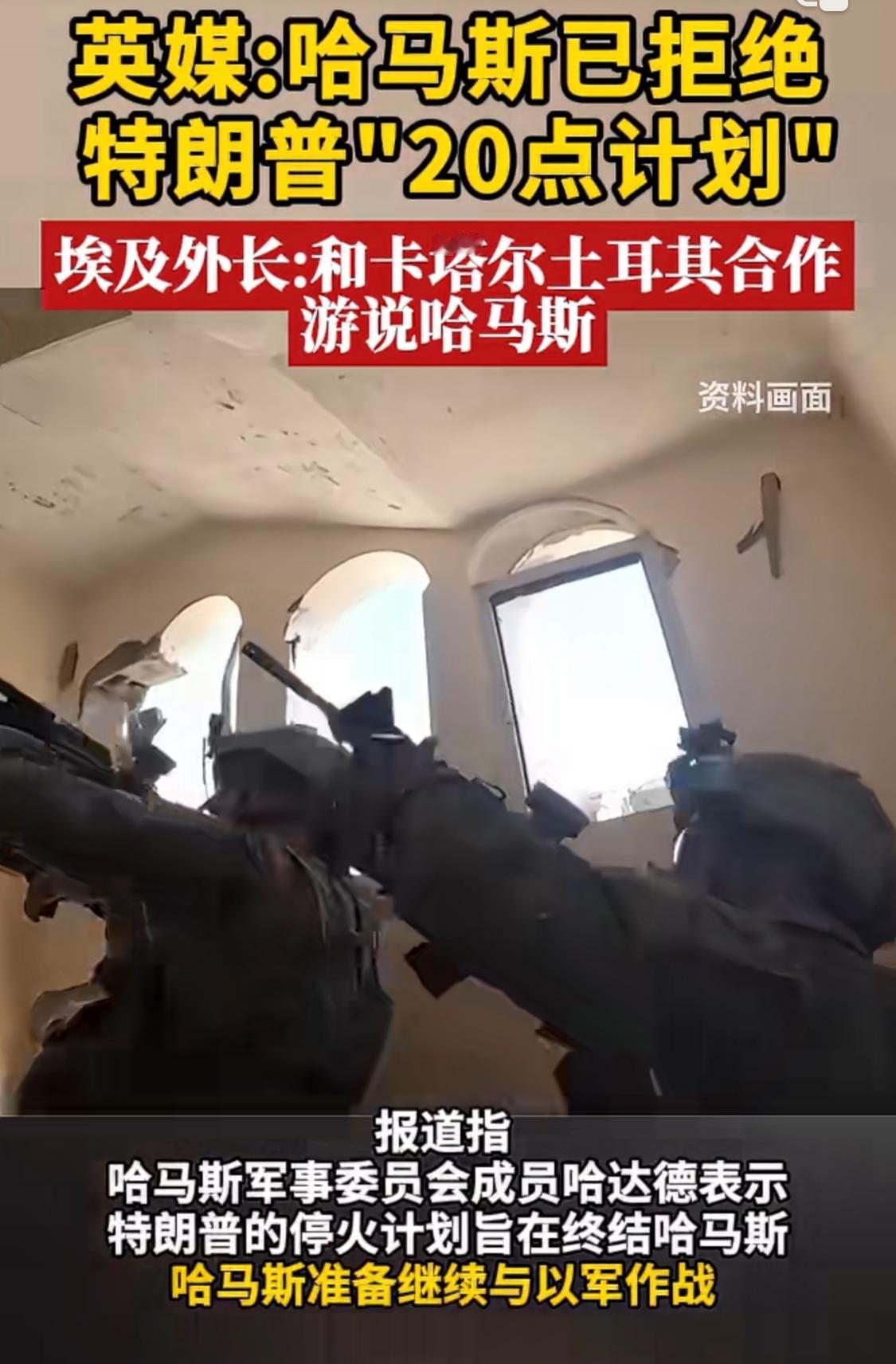 不出所料,哈马斯拒绝了特朗普提出的“20点计划”,接下来哈马斯的路会变的更加艰难…… 其实,无论哈马斯是个什么性质的组织,特朗普提出的明显带有偏向性的停火提议本身就让哈马斯几乎无法接受。 要求哈马斯72小时内释放人质、解除武装都还好说,但不允许哈马斯参与政治、仅承认巴勒斯坦建国是"巴勒斯坦人民的愿望",未明确提及"两国方案"、以色列没有明确全面撤军时间表,且计划允许以军在加沙保留大片"缓冲区"等等是哈马斯接受不了的。 无它,哈马斯想着要不是有自己在艰难反抗,估计加沙啥的早就成了以色列领土了。结果,到了了啥好处都没捞着不说,巴勒斯坦的未来依据充满未知。 之所以说哈马斯的未来路会很不好走,是因为美国也有理由亲自下场了,埃及、卡塔尔这些以往和事佬在美以的淫威下也不好办。 不过话说回来,美以本身就穿一条裤子,且一直公开反对巴勒斯坦建国。由特朗普开出的停火条件逼哈马斯就范本就是个“欺人”的事,特朗普和布莱尔做主的战后“和平委员会”更是无耻。我深深怀疑特朗普提出的看似可行、实则毫无诚意的方案本就是给美国下场做的“合理”铺垫。