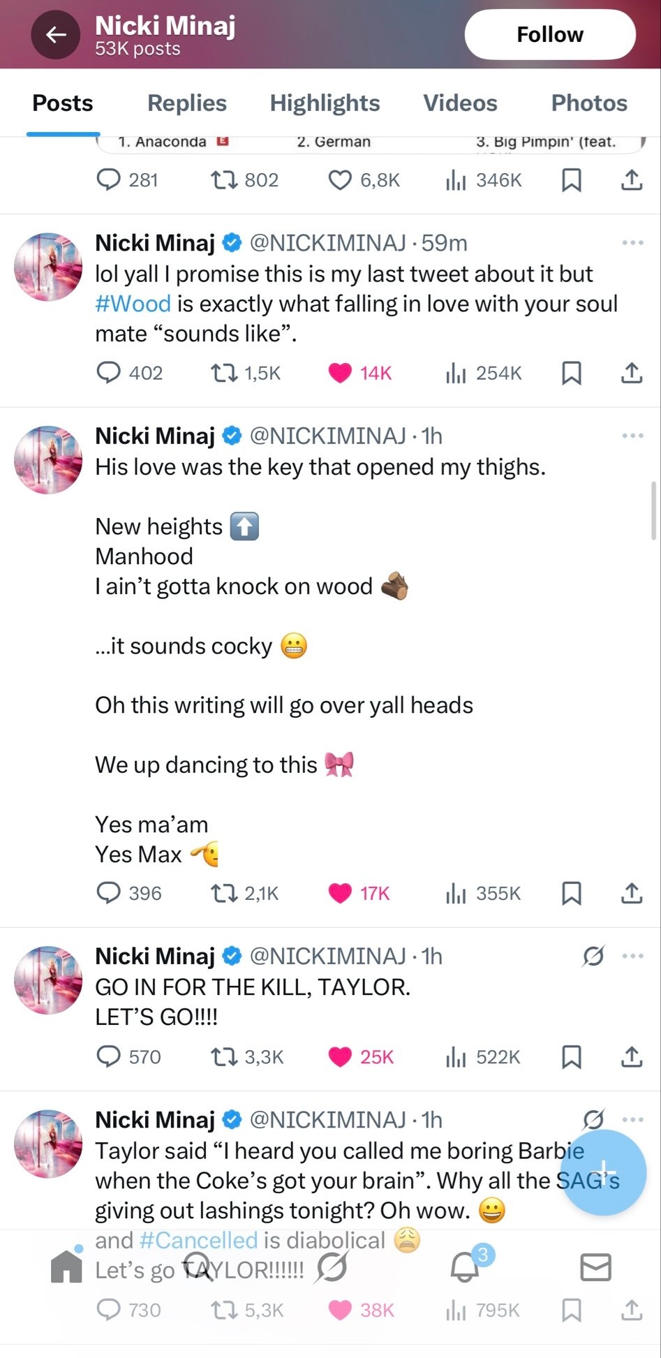 笑死我了!麻辣鸡和CardiB开撕也不忘听霉霉新专,连发数条推称赞!!!🆘🆘霉霉新专