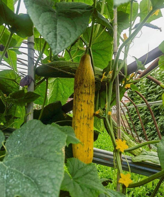 黄瓜之所以叫黄瓜,可不是某些人想象的那样,因为它本身就是黄色。 就像红富士苹果一样,你以为它生来就是红彤彤的吗?其实红富士苹果没有成熟时是绿色,之后变成一抹红,最后才变成红色。 黄瓜长老了之后也是黄色的,只不过市售黄瓜为了追求脆嫩,刚刚长成个头就采摘了,以至于我们见到的黄瓜都是绿瓜。 所以讽刺有些人装嫩有一句话:老黄瓜刷绿漆。