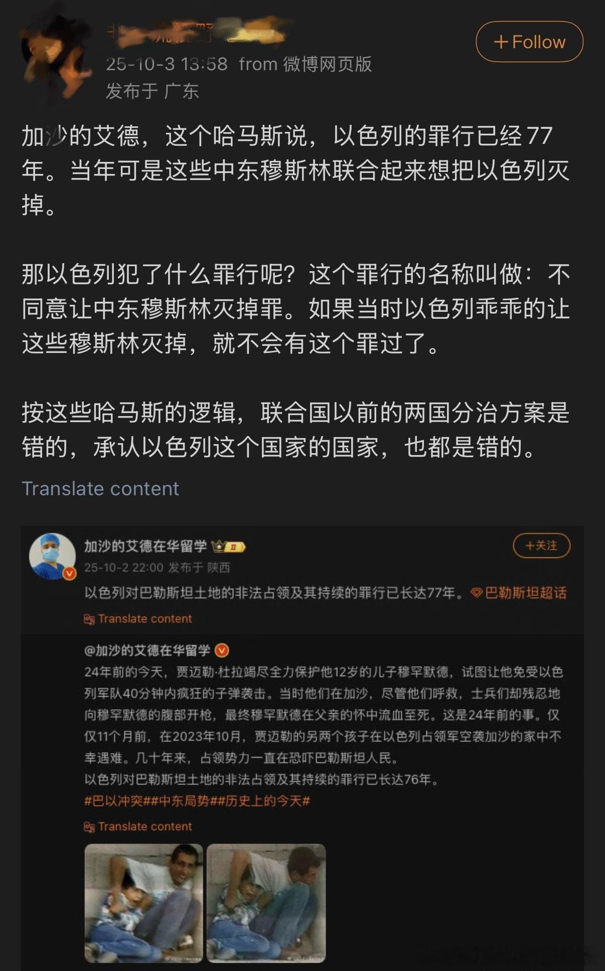 这就是我们巴勒斯坦人的永恒立场。如果你那么喜欢他们、那么热爱他们,那就把你的房子给他们,不要再谈论别人的苦难。