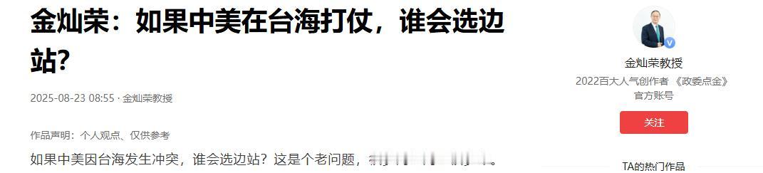 如果中美在台海开战,我们周围会有多少国家站队?金灿荣:看情况。如果我国用武力收复