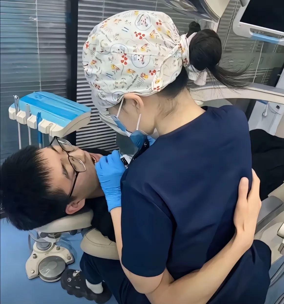 有没有懂行的解释一下, 现在看个牙, 真的是这个样子吗, 是不是自己少见多怪, 我认为患者搂着牙医的腰, 真的是有点过分了, 关键人家是女的, 难道双方就不难为情吗? 要知道, 这可是在看病啊!牙科就诊 牙医诊疗