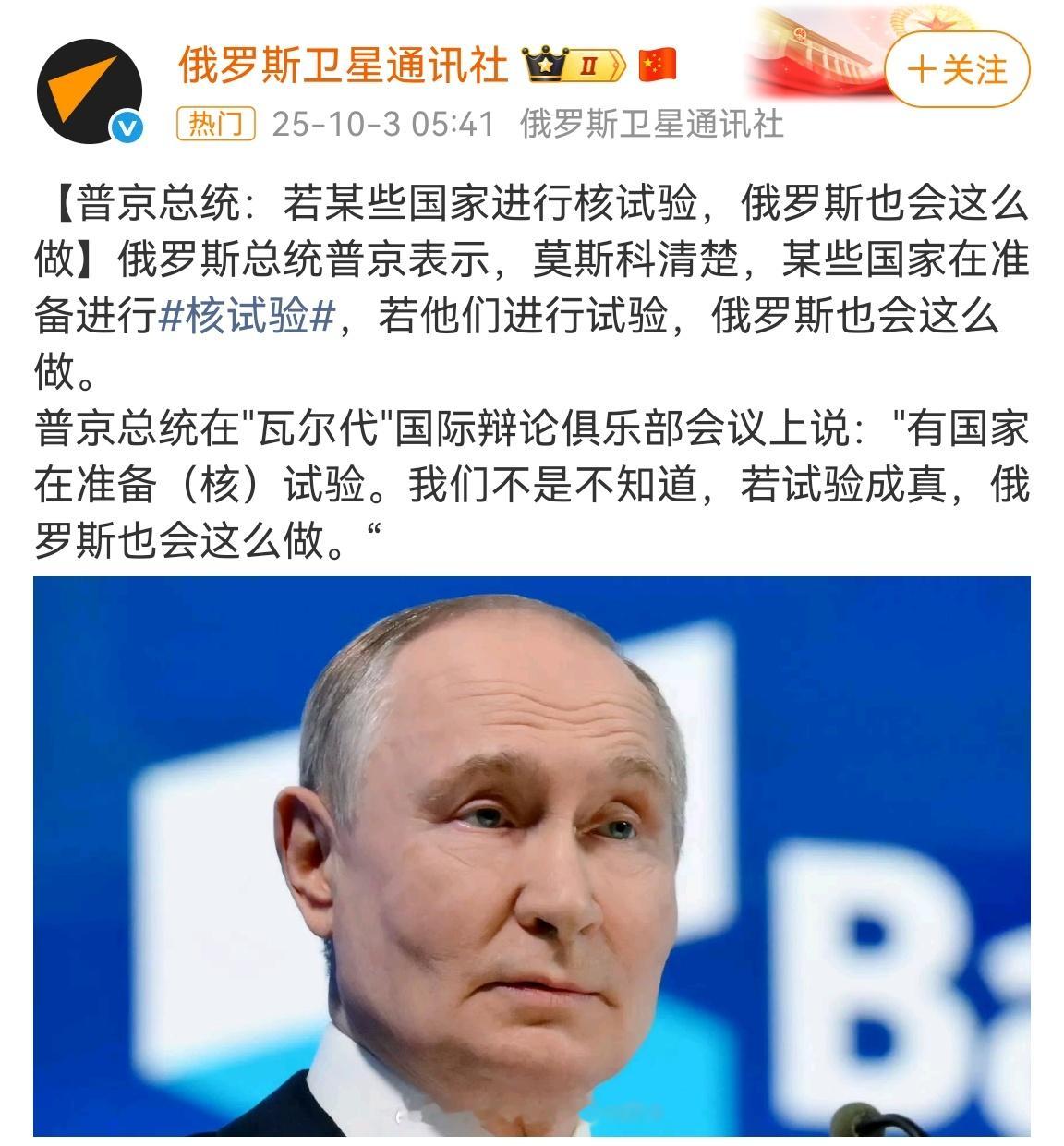 🔻谁啊?老美准备核试验?还是将军爆一个大的?普京称某国准备进行核试验