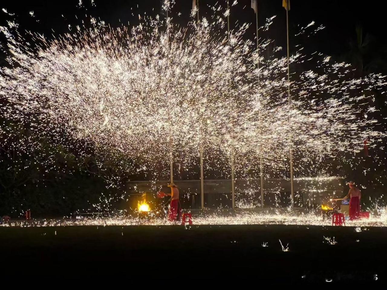 这个国庆,也算是看过打铁花了。 见过烟花,也喜欢打铁花的璀璨