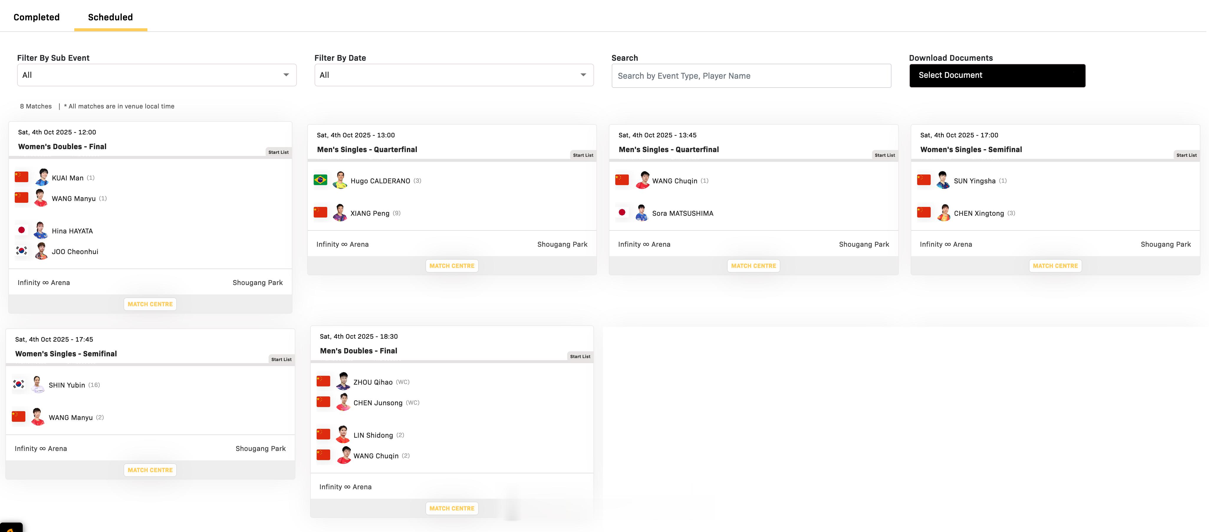 【中国大满贯4日赛程】WTT中国大满贯2025中国大满贯10月4日继续进行,比