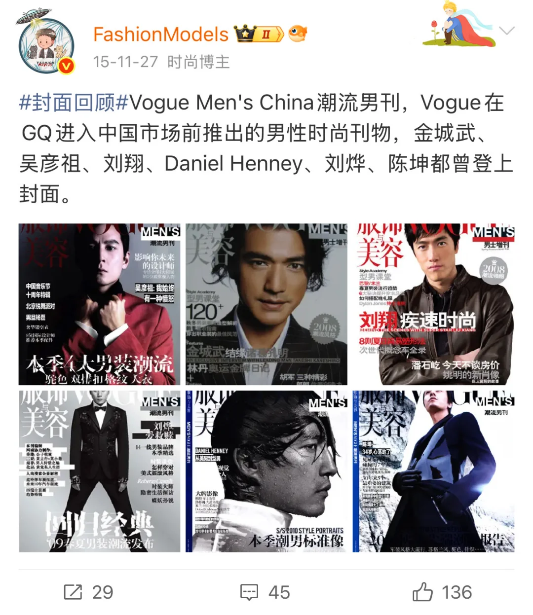 VOGUE MAN与VOGUE近年来推出的VOGUE WELLNESS、VOGUE MOMENT等衍生IP是截然不同的,它的定位就不是VOGUE的衍生产物,而是康泰纳仕集团用于填补GQ停刊后市场空白的重要举措。