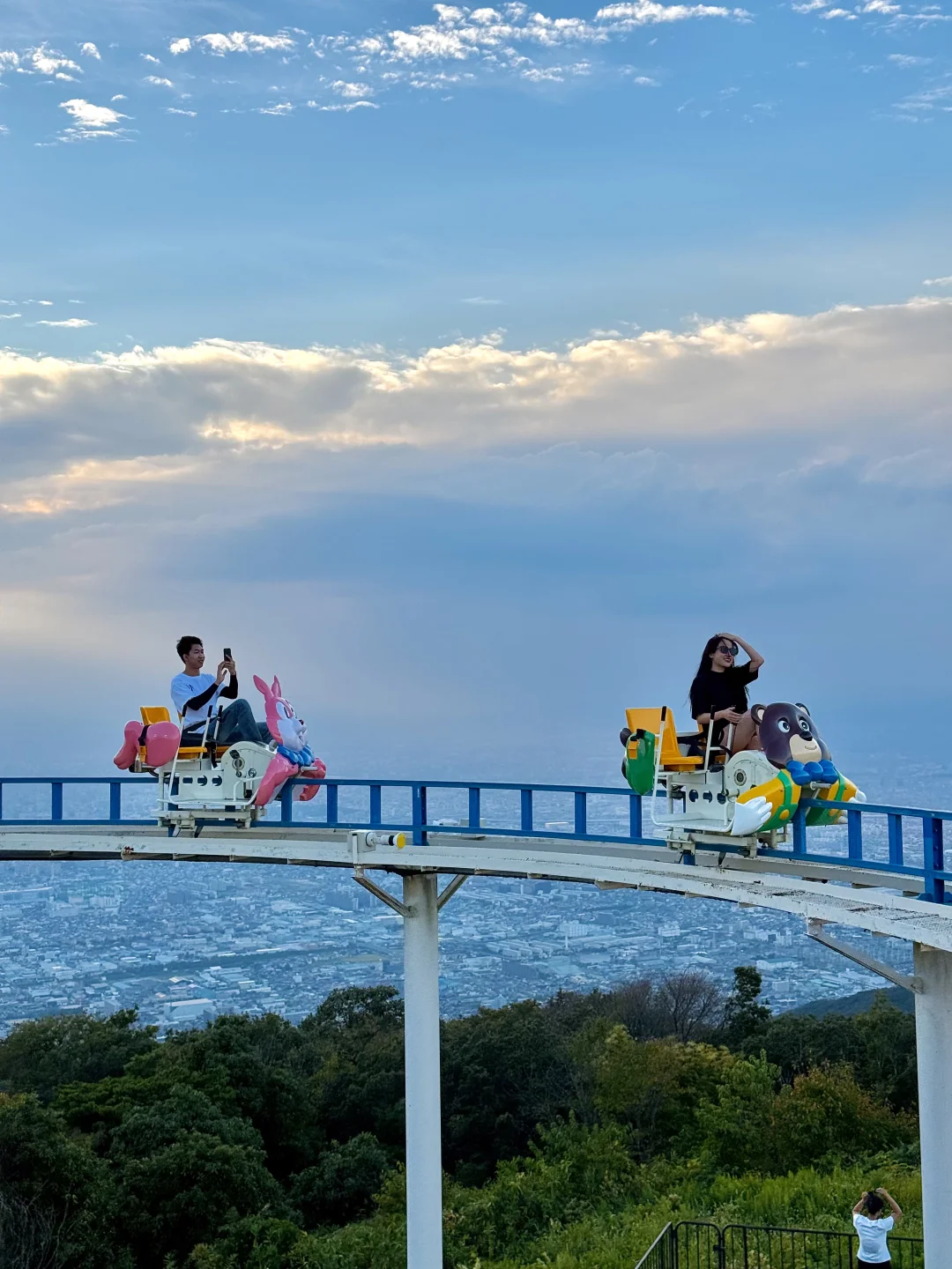 坐到“生驹站”,再走到“鸟居前站”,坐乐园观光🚡上山