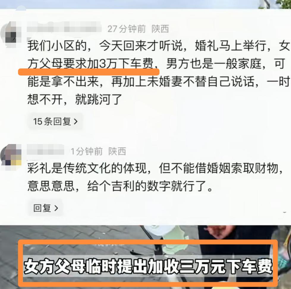 红事变白事!10月3日,网传陕西旬阳一位准新郎因婚礼琐事跳河,当前人还没找到。 据知情网友称,新郎家庭条件一般,本来女方要20万彩礼,男方是借了又借凑够了,谁知道女方婚礼当天临时加两万多的下车费。 新郎为了凑彩礼家已经东借西凑,而且当天亲朋好友都来了,众目睽睽之下 ,面子里子都没了,压垮他的最后一根稻草是新娘始终站在娘家人这边,没替新郎说过一句话。 就事论事,临时加价就是做人道德有问题,欺负熟人,也是最后一次“服从”测试,如果男方同意了,婚后也会造成婚姻很多问题,要么成为吵架的导火索,要么男人永远被被女人拿捏着。 这男的是真傻,临时加价的可以不给大不了取消婚礼,过后再打官司拿回彩礼,犯不上搭上自己的命,就没想过自己的父母怎么办,白发人送黑发人,让老两口怎么活? 他做了高价彩礼、婚礼前夕随意加价的“殉情者”,他的行为会影响一些家庭的想法吧,希望不讲道德随便加价的人好好想想,要高价婚前就应该说清楚,不愿意就不结婚,临时加价害己害人! 官方通报男子婚礼当天跳河 陕西婚礼见闻