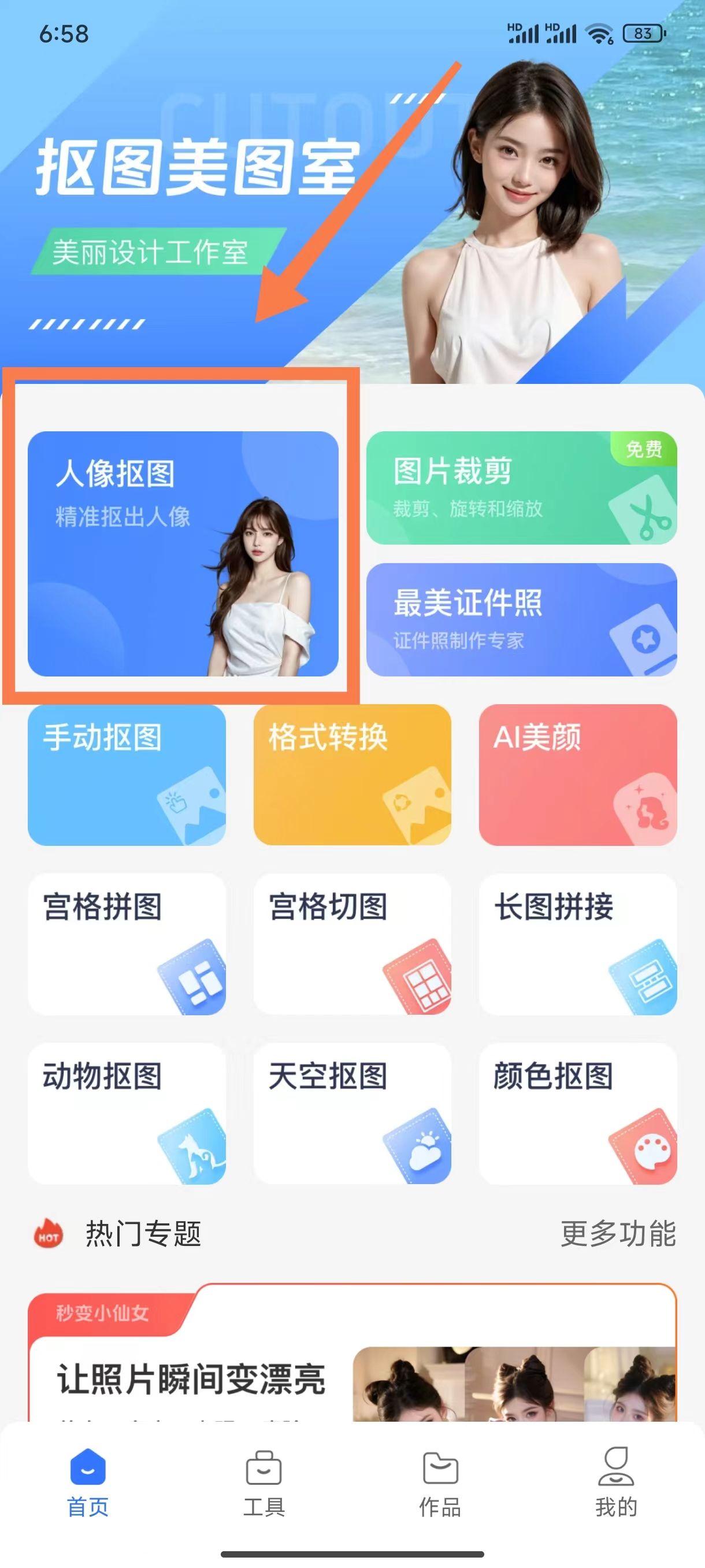 抠图美图室,AI妙手回春,人像物体轻松抠!背景模板花样多,换个场景换心情。生活哲学在于变,一键抠图,万象更新,乐趣无穷!